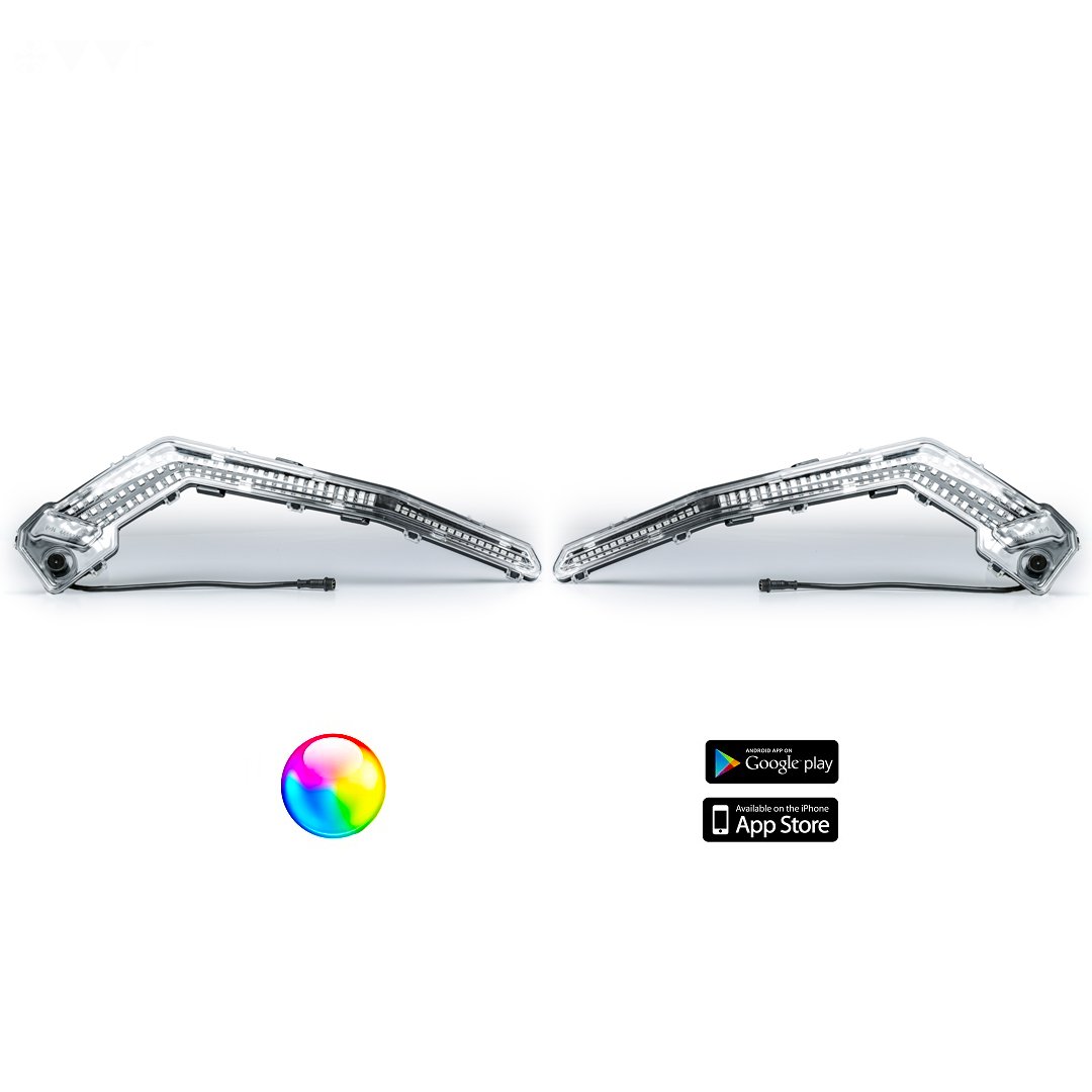 The 5150 Whips Can-Am X3 Eyebrows are the perfect addition to the Can-Am X3 with the Bluetooth functionality that allows for color control through your smartphone and has a multitude of color options and various functions.