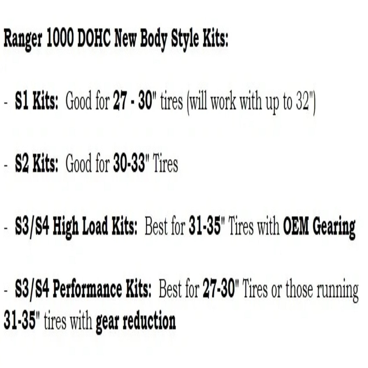 - High Load Helix 1042: Slightly less aggressive than the 1043 helix with good acceleration gains/power transfer over the OEM helix. Designed for a heavier vehicle, heavier tires, heavy sand load or crawling type riding in mind. Works best on Rangers with 31-35" tires and OEM gearing. Excellent all around helix for any Ranger