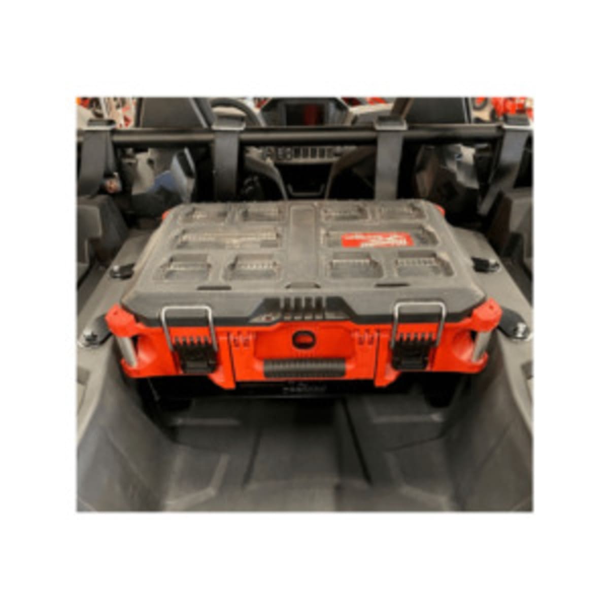 We have designed our Milwaukee Packout plate to fit on your new 2024 Polaris RZR XP 1000. This mount is for 2024 and newer models. Our Milwaukee Packout Mount is the perfect storage solution. This mount uses existing mounting holes so no drilling is required. You can purchase our mounting system (PUCKS) to bolt this Milwaukee Packout mount directly to your bed. This is a very simple install. We CNC Laser cut our Milwaukee Packout Mount in house from 10 gauge P.O. steel then powder coat it black. With the smaller bed in the new 2024 model year we decided to offer a couple different options for you.