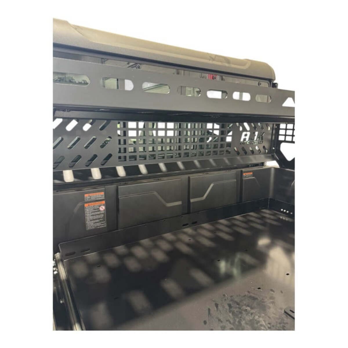 We’ve designed our CF Moto UForce U10 Short Headache Rack to maximize storage and utility for your off-road adventures. This headache rack mounts directly to your bed rails and stands 12" above the bedrail, offering additional cargo space for long weekend getaways or extended trail rides. It features a durable 3-piece construction, CNC laser cut from .125" thick aluminum, and finished with a mildly textured black powder coat for long-lasting performance and style. The top tray measures approximately 22.75" wide by 59.25" long.