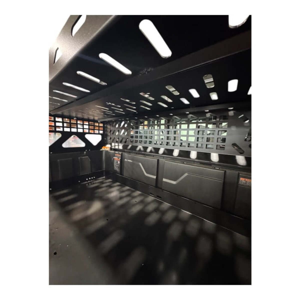 This large headache rack is compatible with two of our Milwaukee Packout mounts, which fit securely in the top tray. Please select above how many Packout mounts you would like to include.