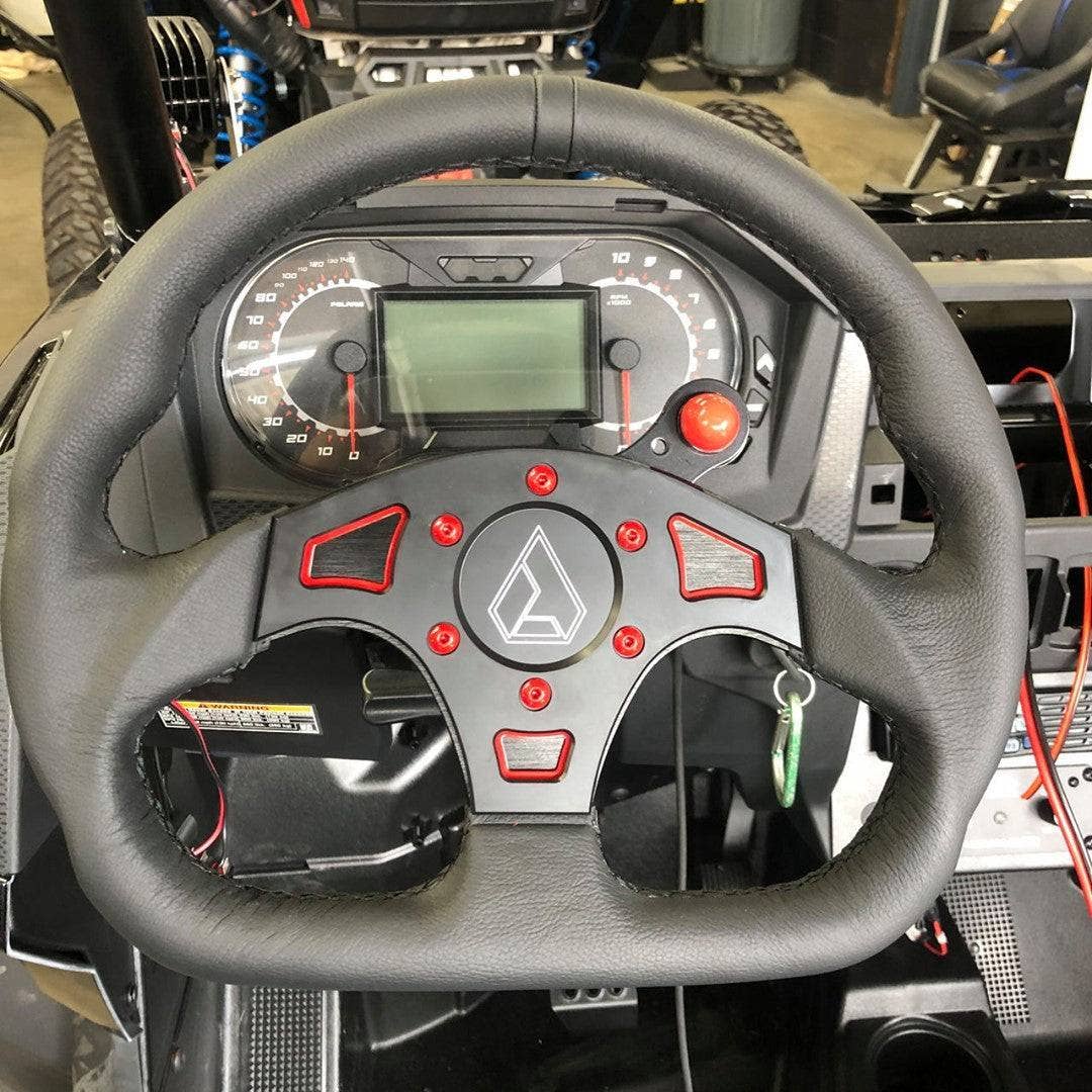The Assault Industries steering wheel push-to-talk communications plate (PPT plate) installs between the steering wheel and hub/quick release. The PPT plate enables the use of a comm. radio push-to-talk button. This lightweight plate is machined from 6061 T6 billet aluminum and is available in black powdercoat finish.