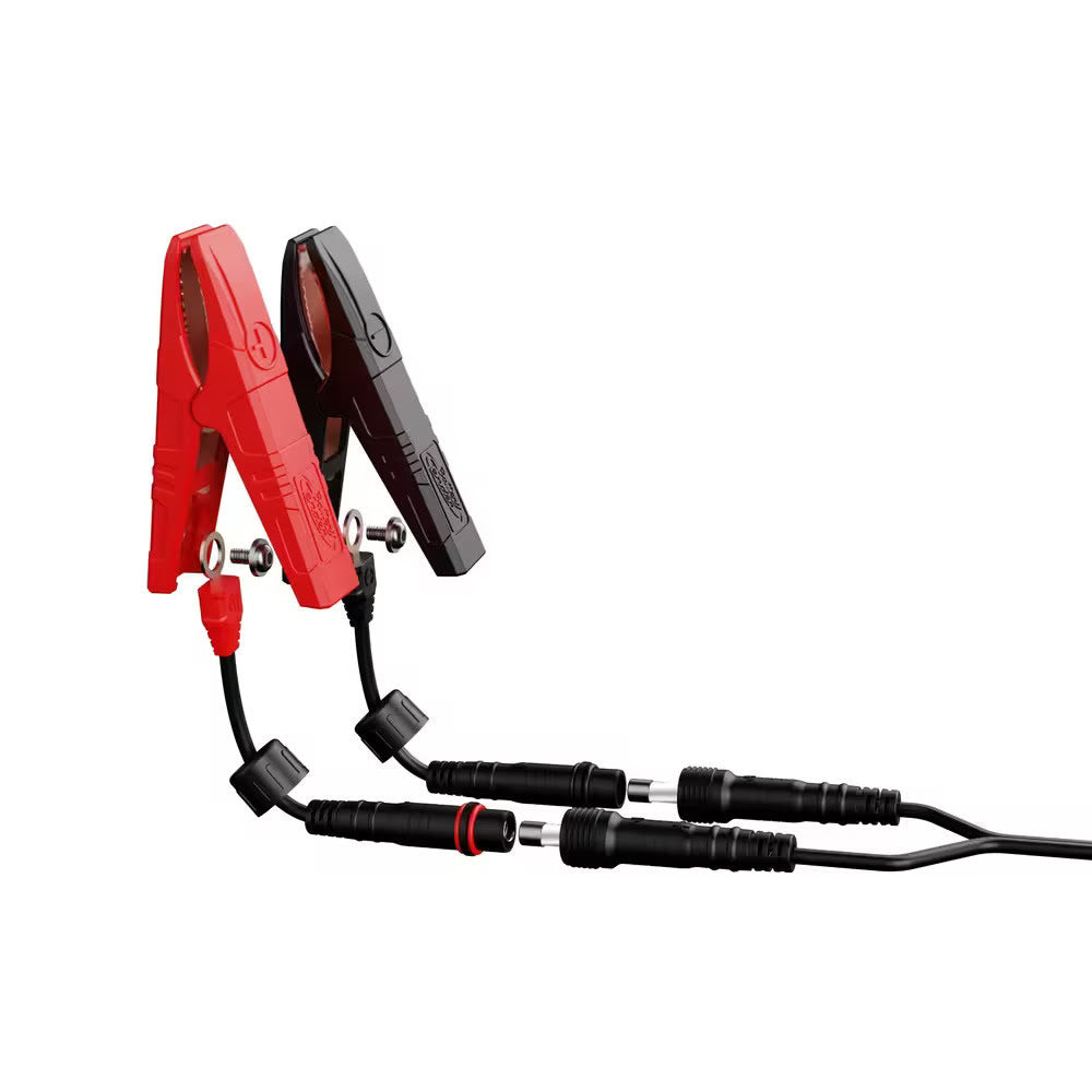 - Included Cable: Alligator clips and ring terminal combo with a threaded screw-lock connector (designed for higher amperage).