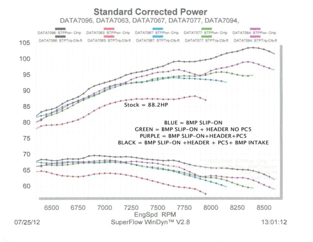 - Great gain in low-end torque with power that loves to rev out further than the factory