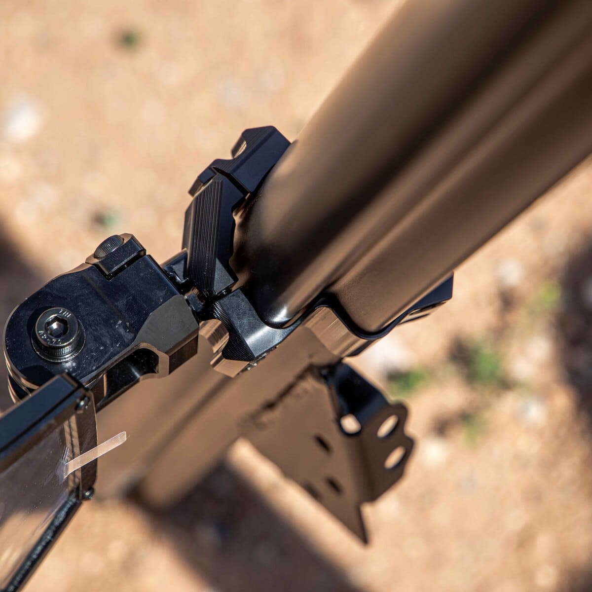 The Cuero Pro offers a new stylish design with a larger viewing area, thanks to an increased size convex glass mirror. With an improved modular design using our proprietary clamp system, these mirrors also clear most windshields and window nets. Our Cuero Pros offer an adjustable, beefier design that integrates with our mounting system to run a pod light of your choice.