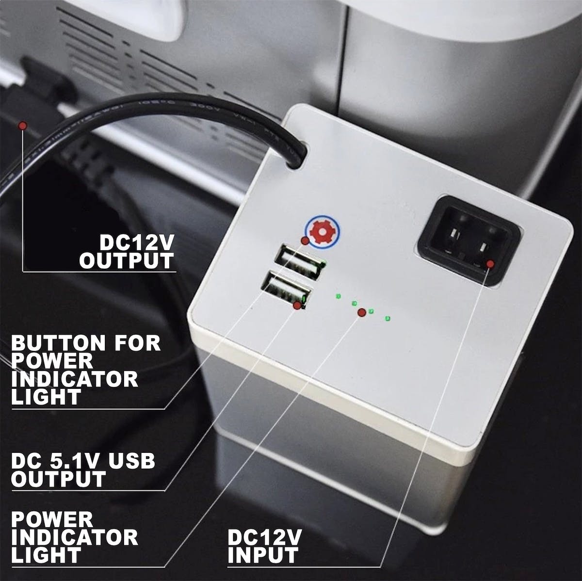 - Allows Portable Refrigerator Operation Without Power Source