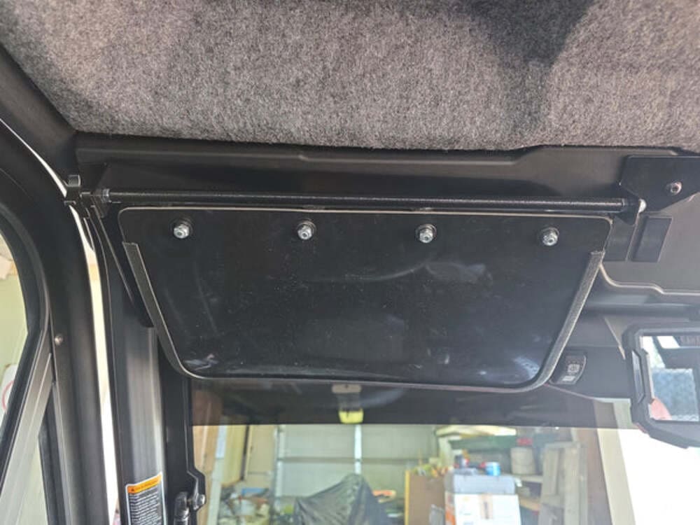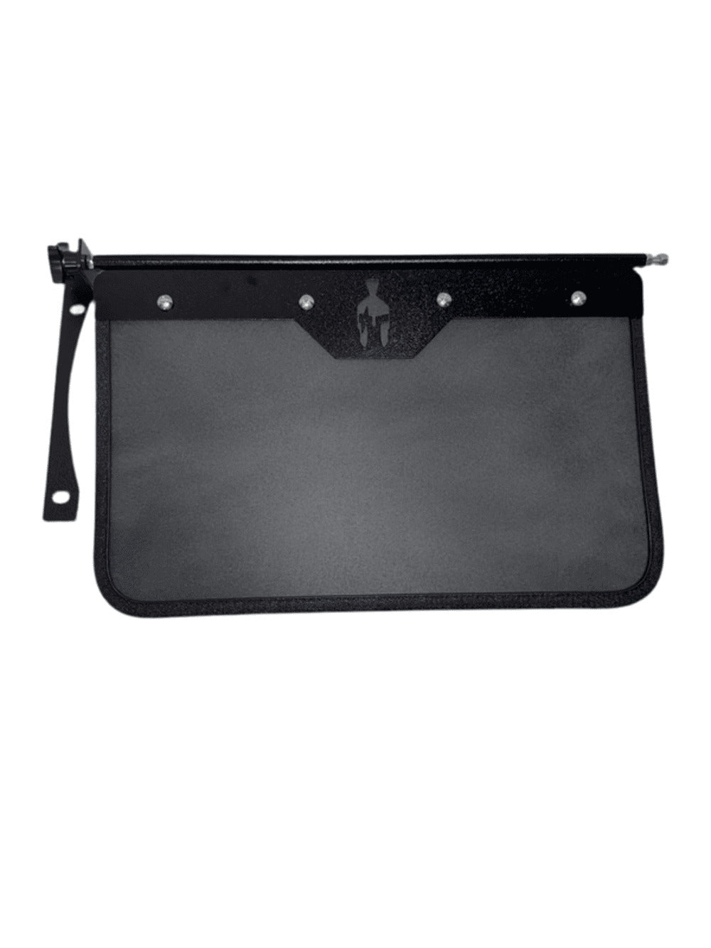 1/8" Powder Coated Aluminum Windshield Visors for Driver & Passenger Side to fit the CANAM DEFENDER. Easily Install to Cage and will fit with factory rearview mirror or any mirror that is 10.5" or less. 2 different height sizes available. Sold as pair.