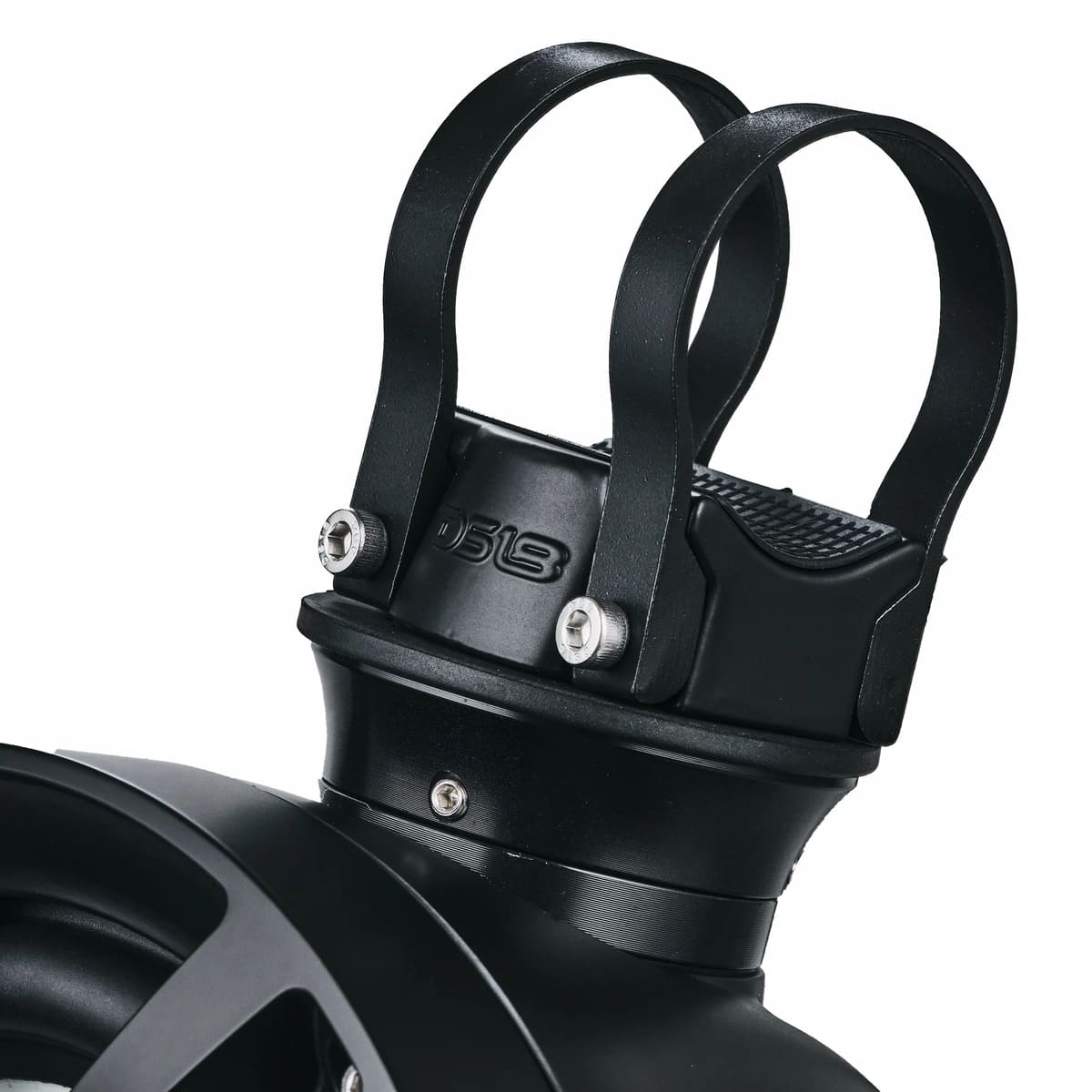 Installation is a breeze, thanks to the durable strap clamps that effortlessly mount on bars measuring 1.75" or 2" in diameter. Plus, the integrated RGB LED lighting adds a touch of brilliance to your setup, illuminating both the speaker and the distinctive DS18 logo.