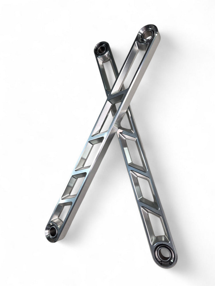Our Can Am Rear Sway Bar Links are an essential upgrade designed to replace the vulnerable factory links that are prone to breaking in extreme off-road driving. CNC cut from 6061 aluminum, they feature high strength uni-balls with misalignment spacers for improved angles. Hard anodized clear, the install easily to the factory position.