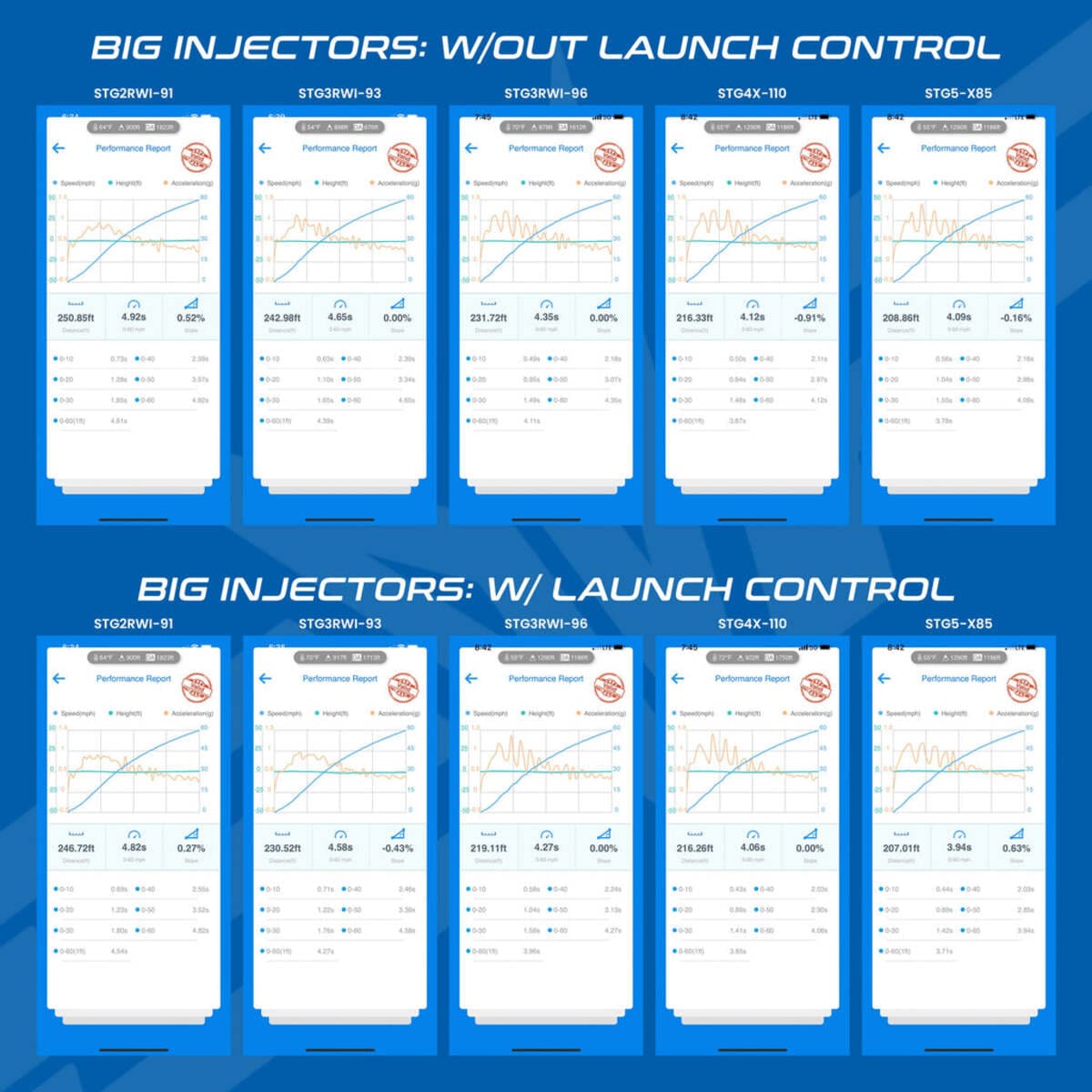 Power delivery has never been better with crisp, head-pinning acceleration off the line to drastically improve 0-60 mph times, going from 5.63 seconds stock to 3.94 seconds on our Stage 5-X85 tune. Additional horsepower gains have also been realized throughout the Stock and Big Injector tune stages for an overall transformation that you’re guaranteed to notice on the first pull.