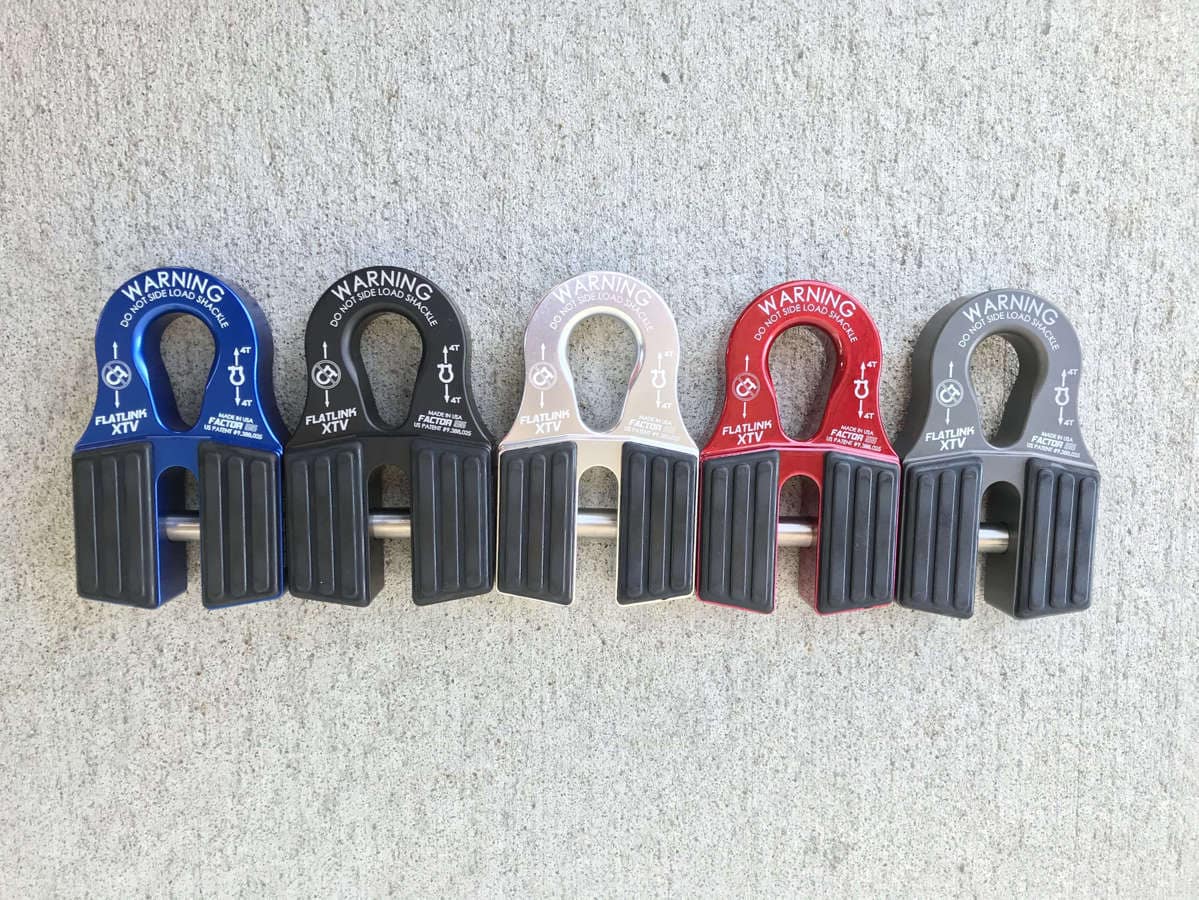 The FlatLink XTV stows neatly against either roller or Hawse type fairleads and is designed to be used with common standard ½ – 5/8 inch shackles. MADE IN THE USA, the FlatLink XTV is constructed of 6000 series billet aluminum and 6Al-4V titanium and is anodized/powder coated in 5 different colors. The FlatLink XTV has a max load rating of 8000 pounds and an ultimate failure of 28,000+ pounds.