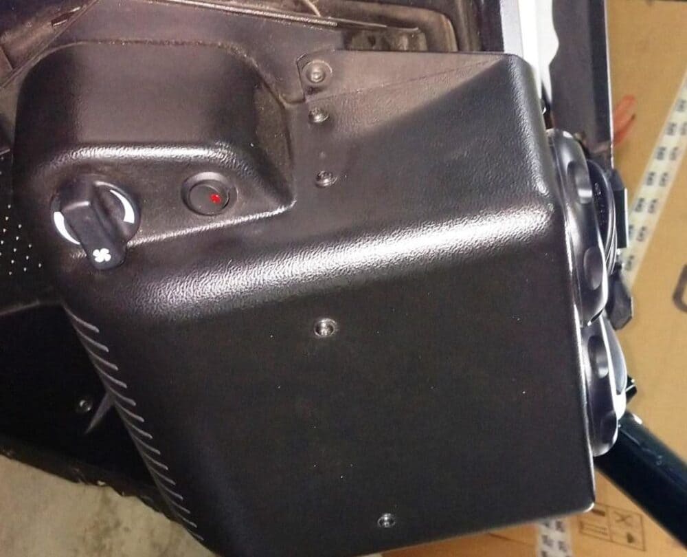 Heaters tie in to the coolant system of the vehicle, providing heat and defrost function. It has a 3-speed blower, and a special fluid pump that keeps pushing fresh hot coolant to the heater core even when the engine is in idle. The heater as a center mount.