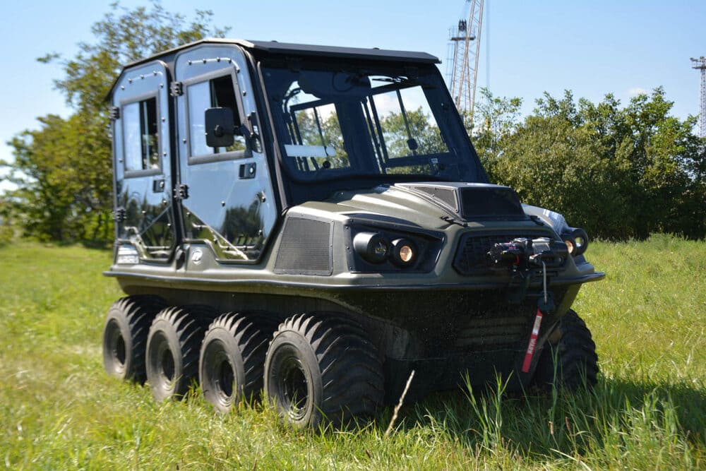 - It is dangerous to traverse water above the middle of the wheel with a cab installed due to the increased weight of the vehicle. Overturning and/or sinking is likely.