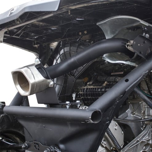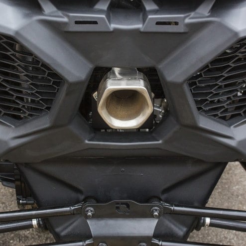 The HMF™ Slip-On (Muffler Delete) exhaust system for the Can-Am® Maverick X3 is a no-core slip-on system that sounds loud and angry. It utilizes the stock end cap, turbo, and the downpipe heatshield. Cerakoted™ Black, the Slip-On system picks up 2-3 more horsepower, screams at 114dB at 4,000RPM, and weighs 5.5lbs. This exhaust isn't for the faint of heart but it's a great way to keep your stock setup while adding performance and sound.