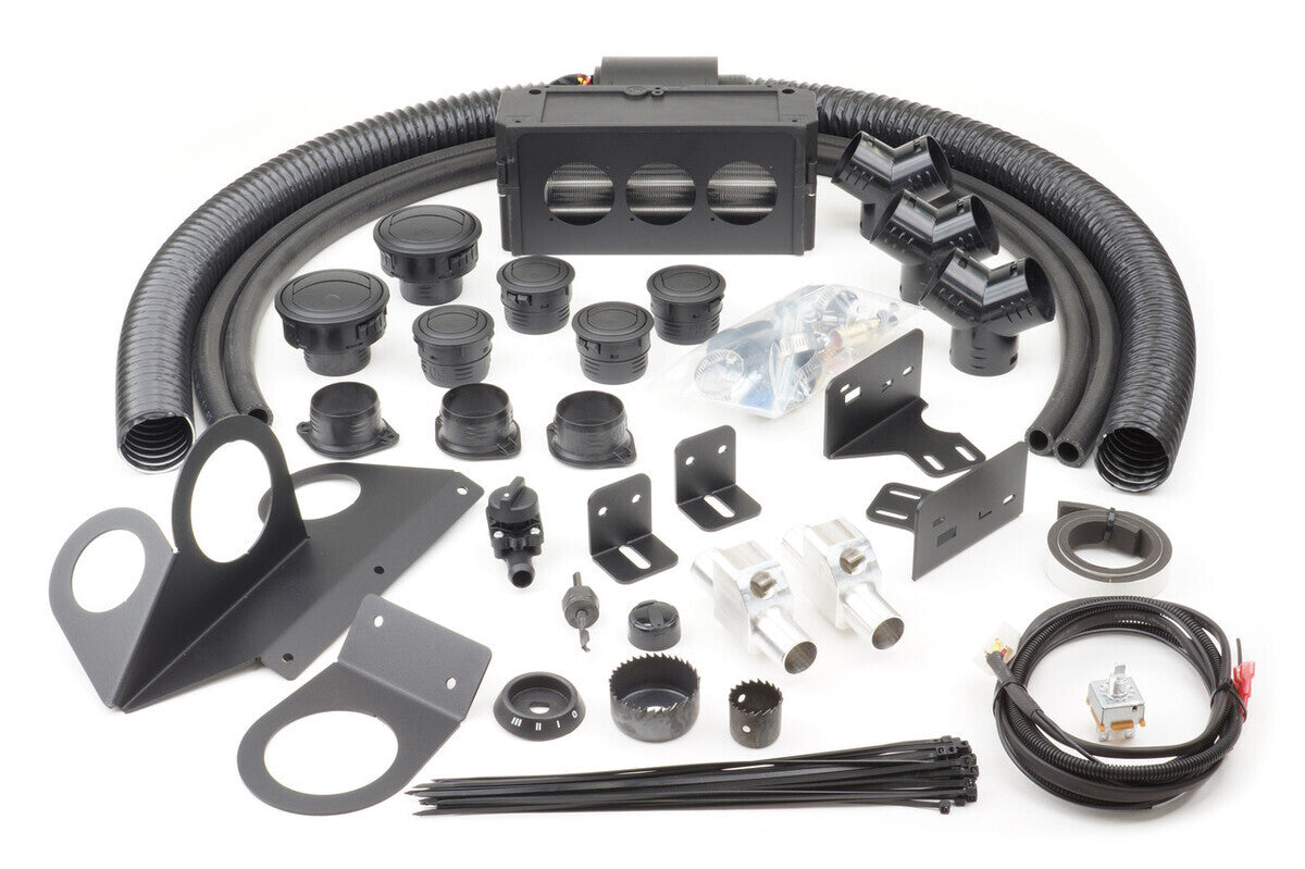 This Ice Crusher Under Dash Heater (Behind Dash Out of Sight) kit comes with 6 vents and comes with a compact yet powerful heater with a three speed fan which will deliver heat from the 14,600 BTU* Compact Heater Unit. Modern automotive quality adjustable louvers direct the heat were you need it. Two 2” vents mount on top of the dash to defrost the windshield, two 2” vents mount in the lower dash panel to warm the feet and two 3" vents mount in the center/mid dash area. Kits are supplied with custom CNC made alloy Y connectors. Kits also include custom mounting brackets, heater hoses and duct hoses, EZ-Coils (used to stop the hoses from kinking), hose clamps, vents, hole saws (for the heater hoses and vents), grommets, shut off valve (others don't bother to supply this item), switch, wiring loom with terminals included, templates, your specific mounting bracket with hardware, and instructions. Note: Does not work with factory wipers, although the wipers can be switched to the other side making room for the heater.