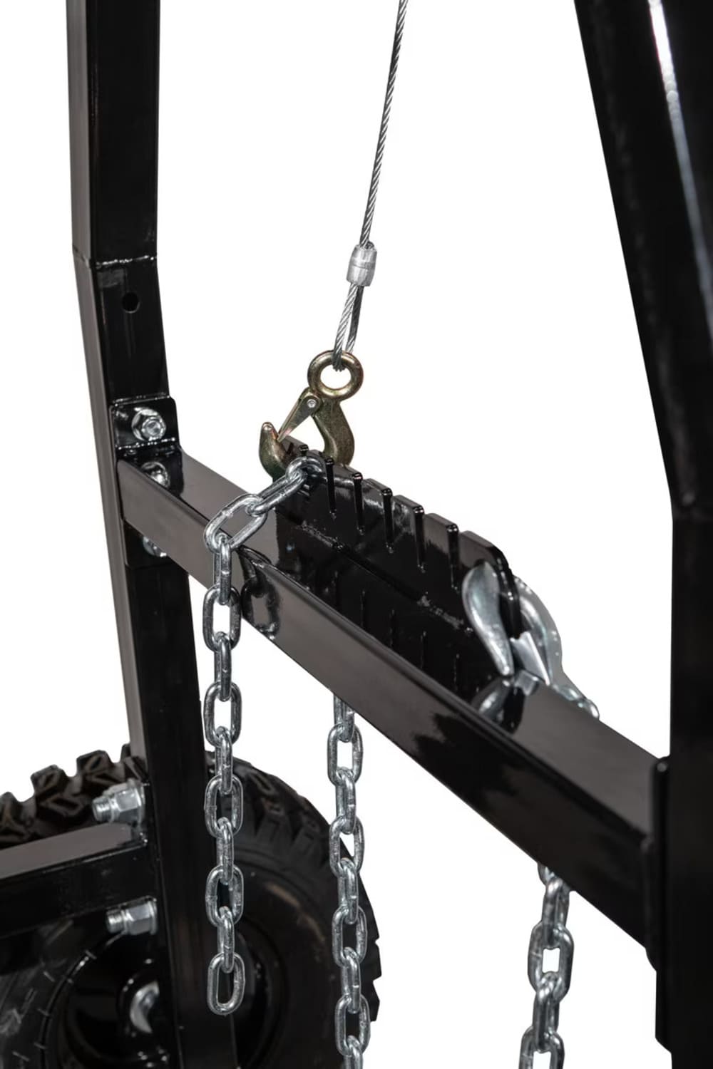 Turn your ATV, UTV, or Tractor into a log-hauling best with the Impact Implements 1500lb Log Hauler – one of the newest entries in the hugely popular USA-trademarked Impact Implements line. Made with HD steel construction for hauling up to 1500lb logs, you can haul even the largest logs without having to chop them into small sections with lesser log haulers.
