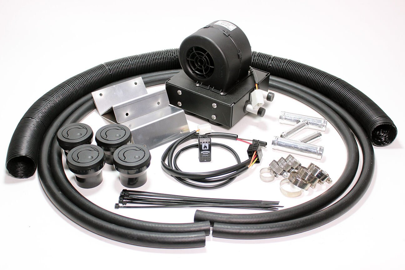 - Includes all necessary components: heater hose, hose splicers, hose clamps, mounting brackets, defrost and floor louvers, ductwork & wiring.