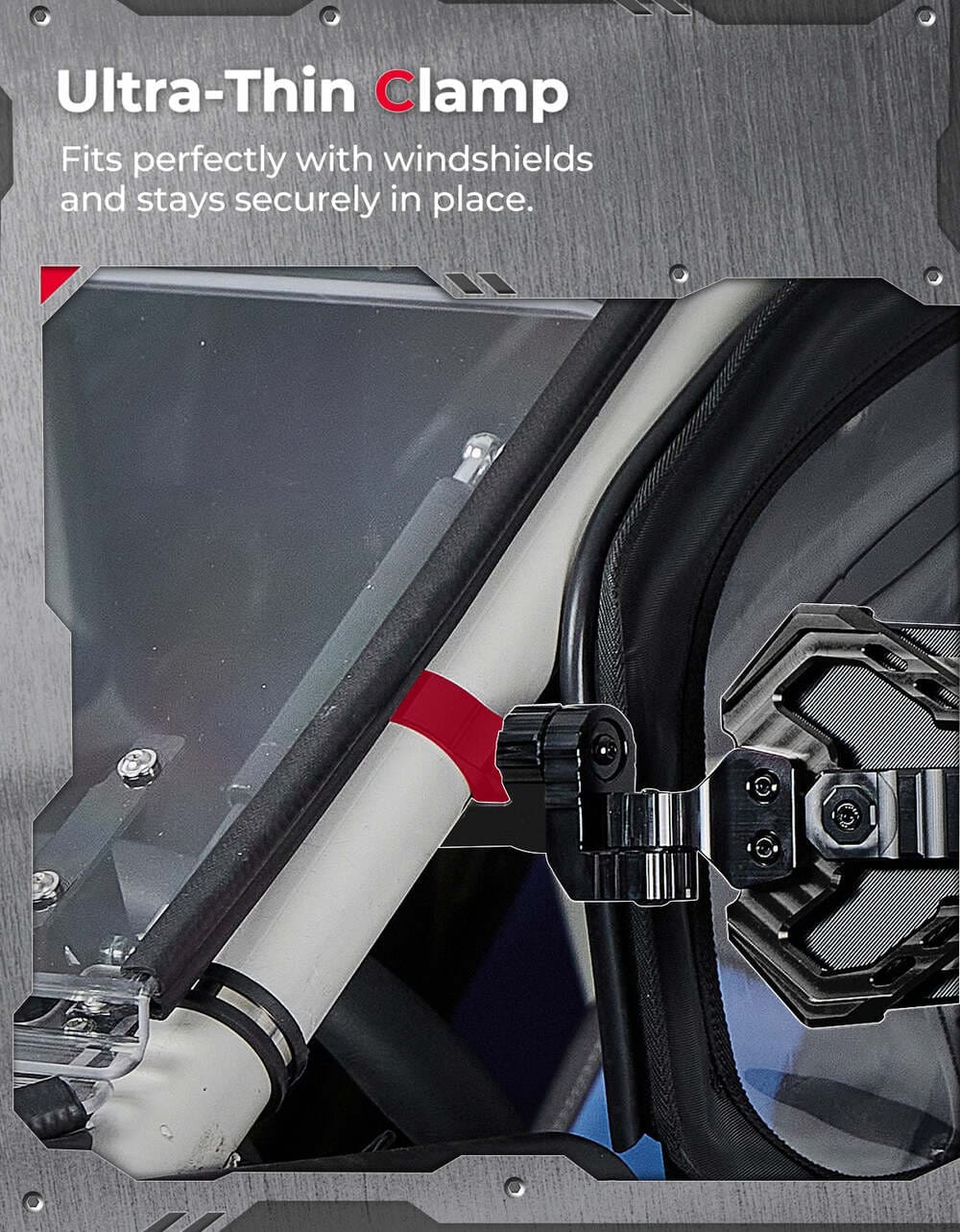Kemimoto 1.65-2 Inch Roll Bar CNC UTV X Mirror w/ Integrated Light Mount - 1 Pair