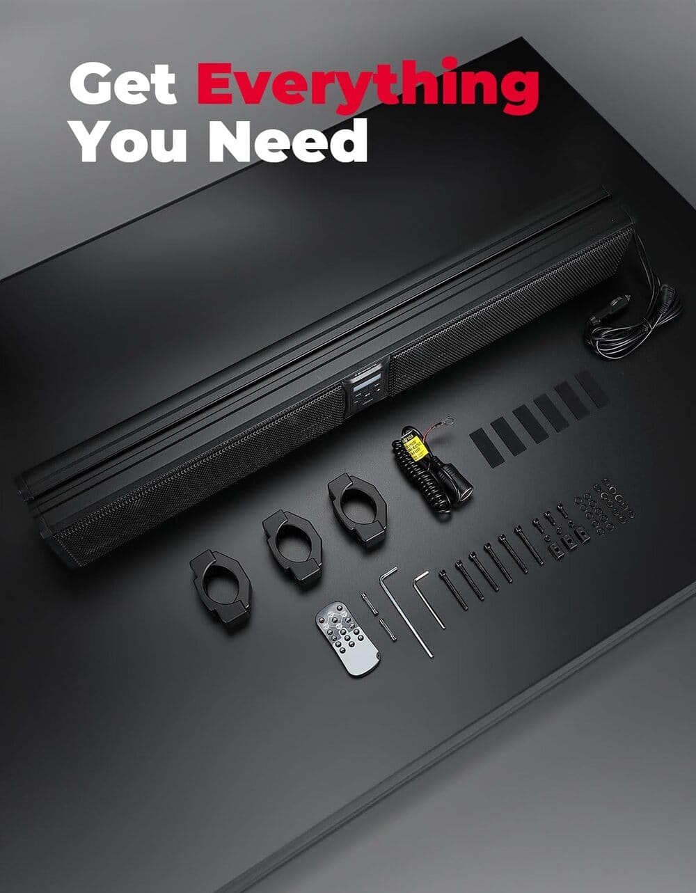500w Peak Power: Equipped with a powerful built-in amplifier, this UTV sound bar provides up to 500 Watts of peak power. Enjoy deep bass, crisp highs, and dynamic sound performance that will not be drowned out by engine or wind noise.
