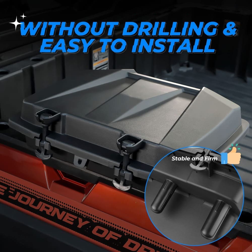 - Tool Free Installation: No tools and drilling required. Quick mount pegs allow utv cargo tool box for easy installation and removal.