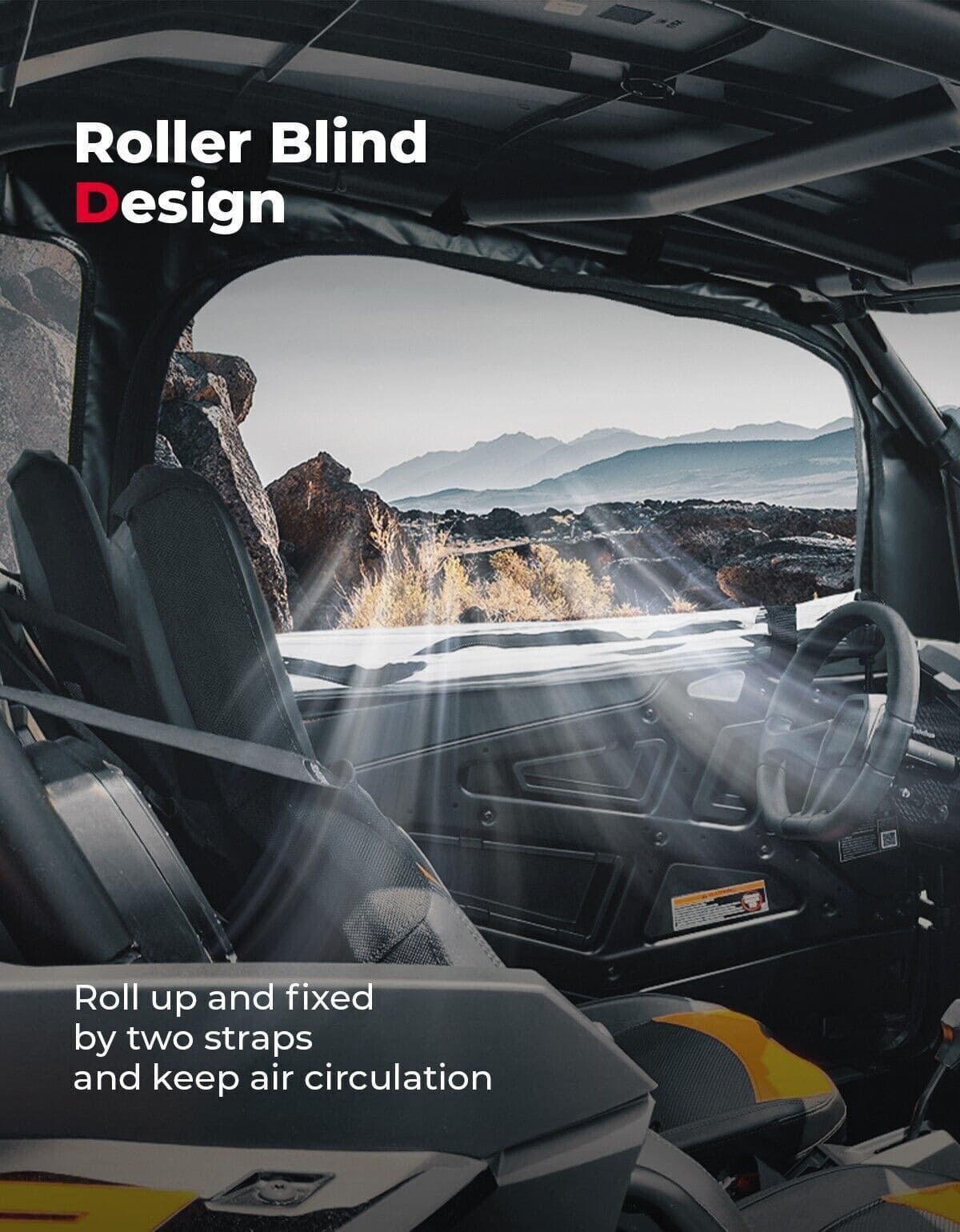 - Rollable Windows: Kemimoto transparent soft window can be rolled down whenever you like. What you need to do is to unzip the zipper to the lower-left corner of the soft door, and fixed the soft window with two straps on the bottom of the soft door.