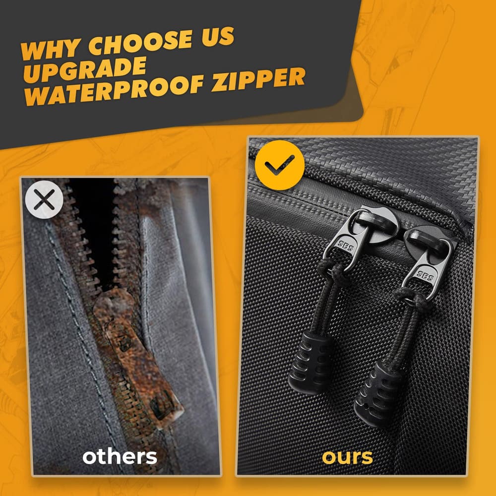 Waterproof Zipper: Upgraded waterproof zippers can block more moisture than other ordinary zippers. The openable cover of the zipper can block ultraviolet rays, rain, sand, dust, and muddy water, which can protect the items stored in the bag.