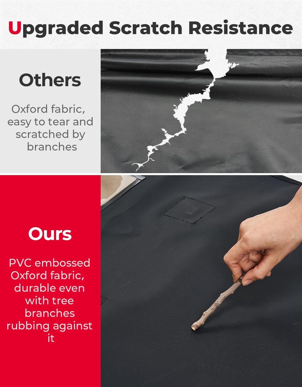 100% Waterproof Canvas roof: The Kemimoto rooftop cover is completely waterproof and made of PVC-coated Oxford fabric. It is highly resistant to friction and tearing, with strong UV resistance that prevents fading.
