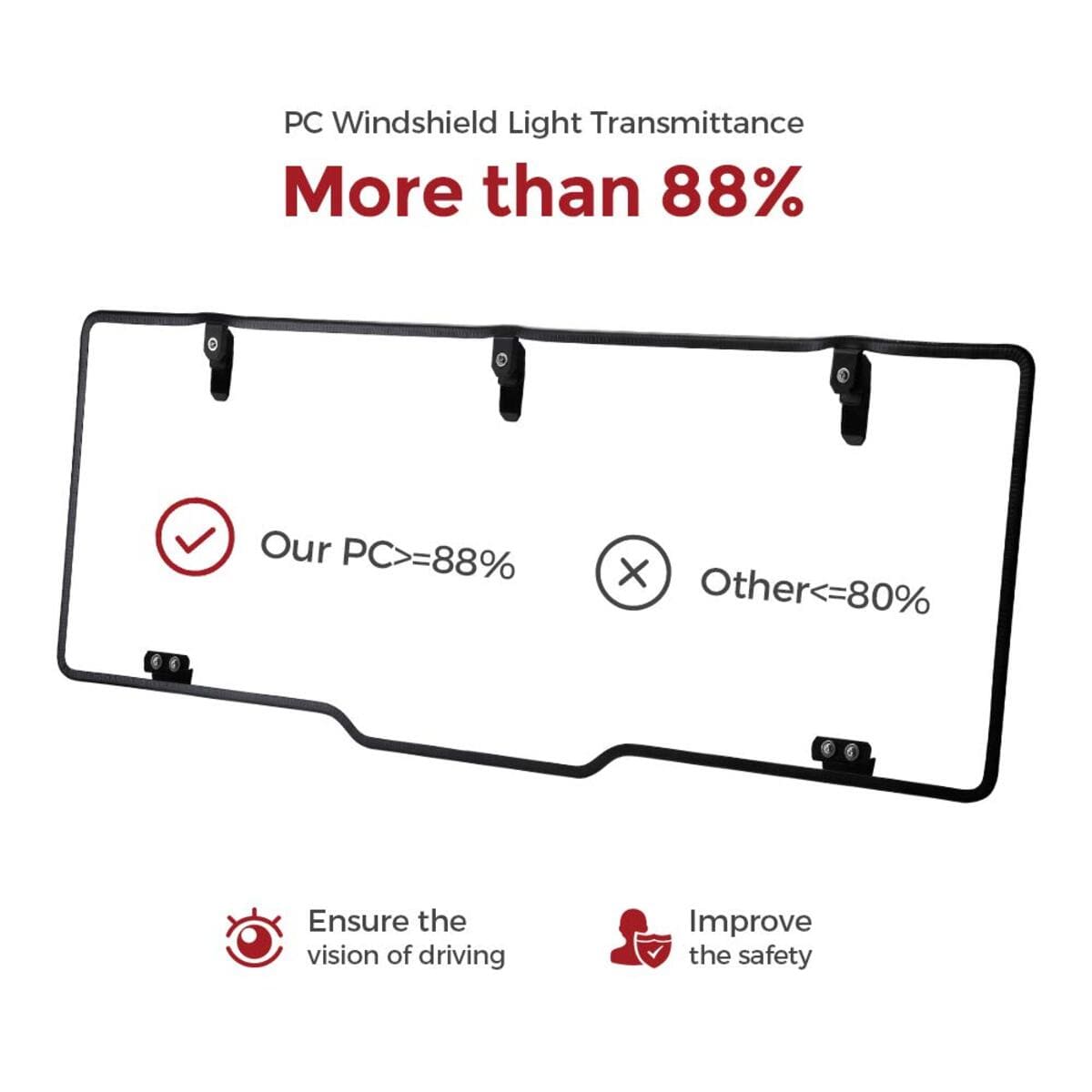 - Strong & Durable PC Material: Made of superior PC material, the utv rear window is 250X stronger than glass, shock resistant, shatter resistant, and corrosion resistant. Born for the extreme outdoor environment.
