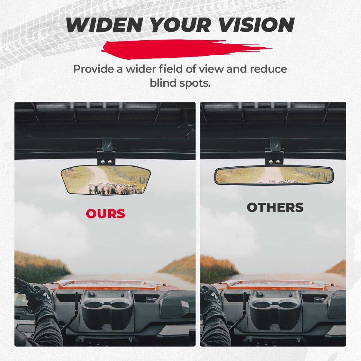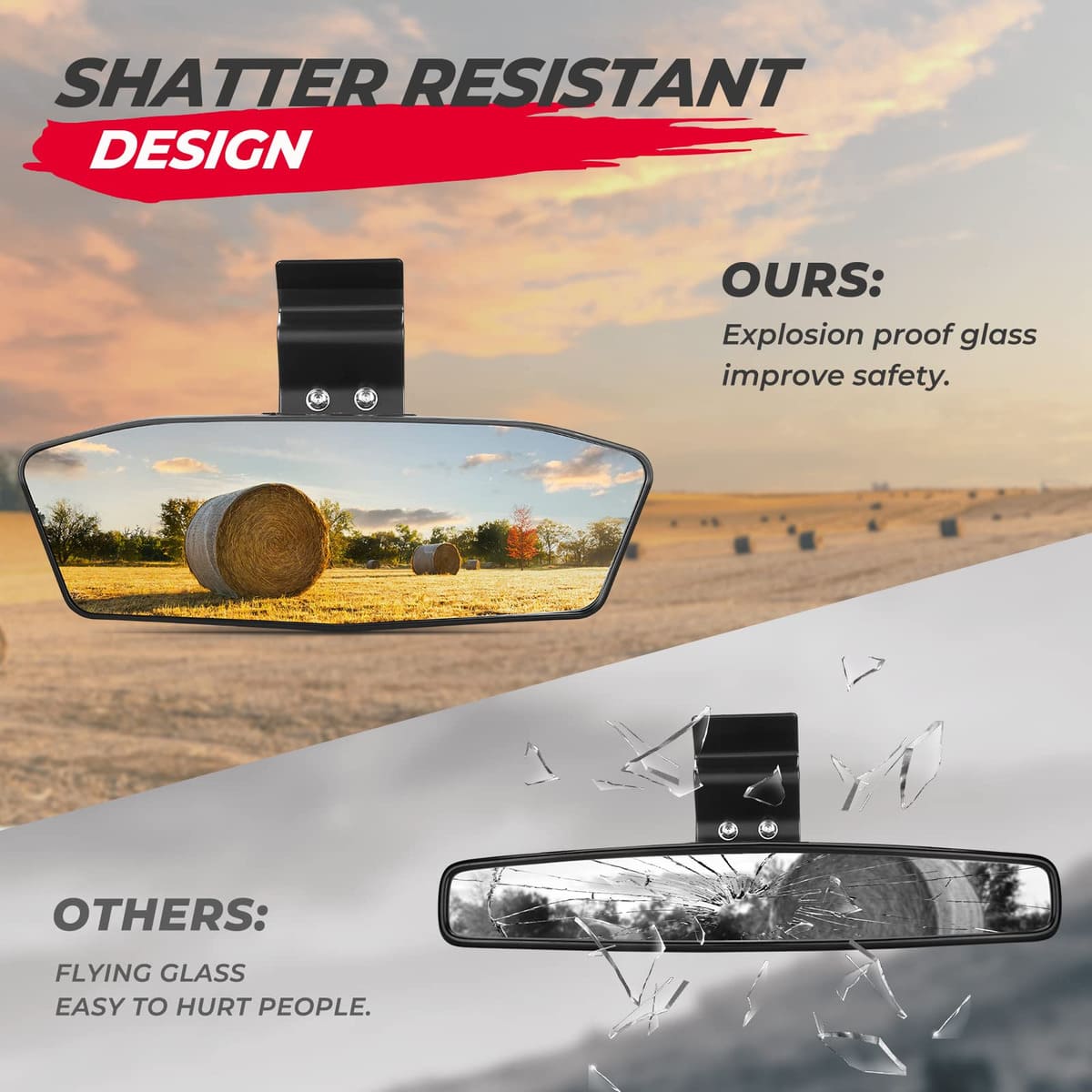 Ultra Wide Rear View: Kemimoto UTV center rear mirror is made of a high-quality convex mirror, which can provide a 180° ultra-wide angle super clear rear view to reduce blind area compared with a flat mirror, which helps to know what is behind you clearly and greatly improves road safety during high speed riding.