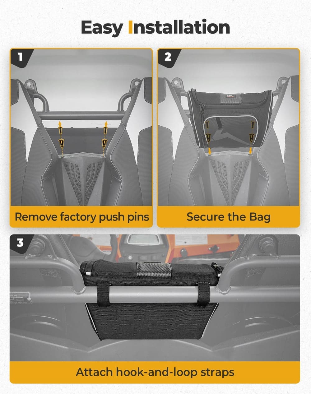 - Easy Installation: The bag's exterior is supported by a hard-shell material that keeps its shape even after long-term use. Secure the bottom with expansion buckles and tighten the hook-and-loop straps to easily complete the installation on your own