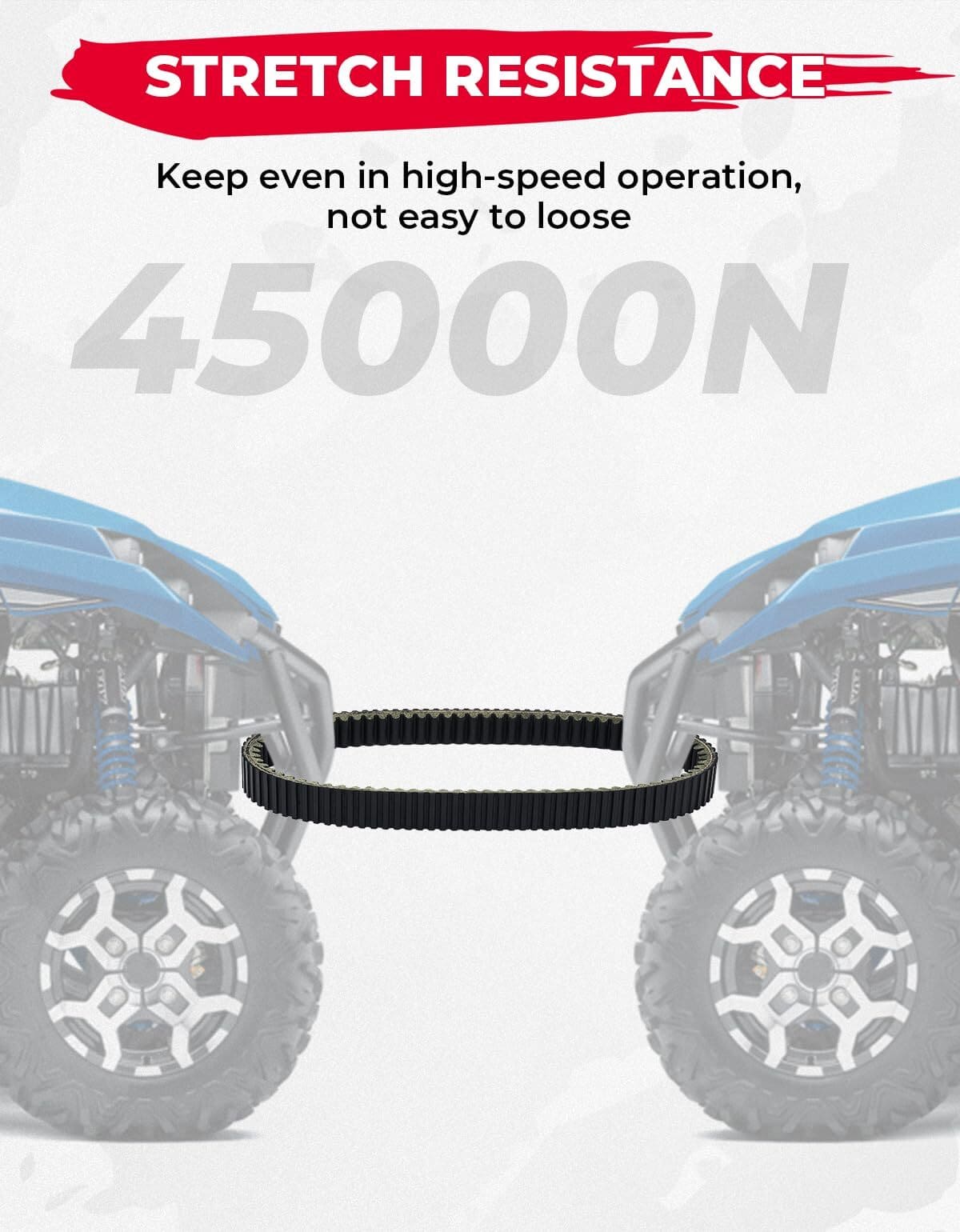 • High Performance: UTV drive belt compatible with Kawasaki Teryx 800 CVT belt with the accurate design of bite distance can ensure that the clutch drive belt is evenly stressed during transmission. Effectively reduce unilateral wear and prolong the service life of the drive belt.
