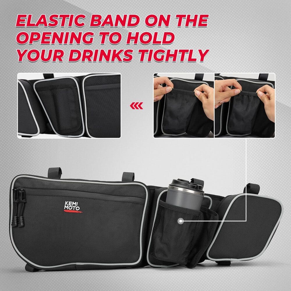 - Concealed Cup Holder: X3 storage bags have cup holders to place our drinks or cell phone. With an elastic band to secure the open, your phone or drinks won't pop out on a rough road.