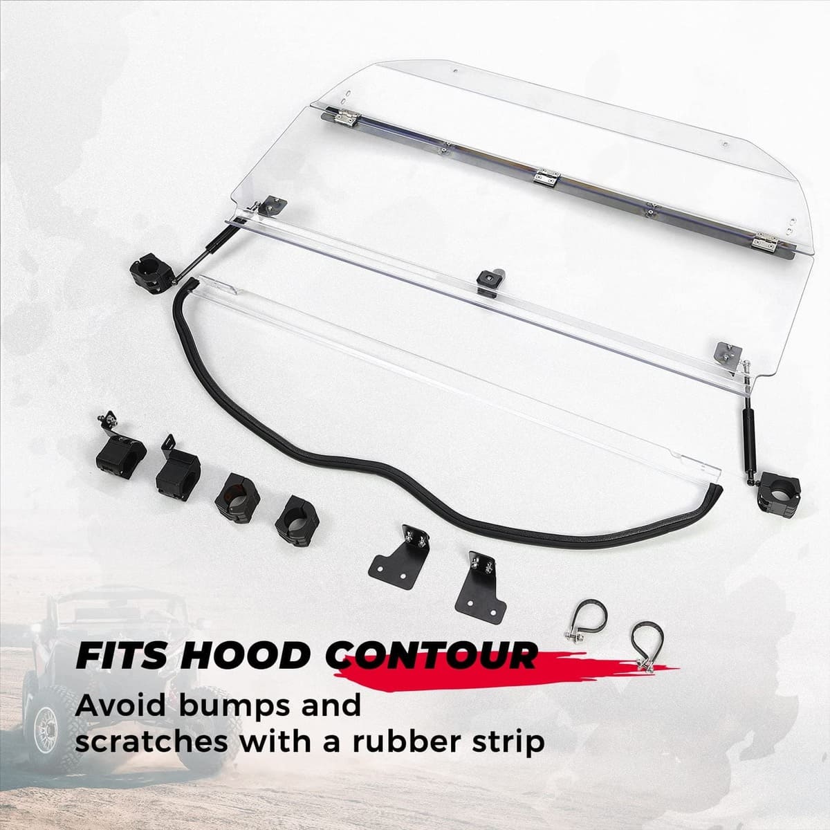 Rubber Pad: The bottom outline is consistent with the hood, with a full-length rubber seal that fits very closely, which not only makes the windshield fit perfectly, but also ensures that it will not be damaged during bumpy driving.