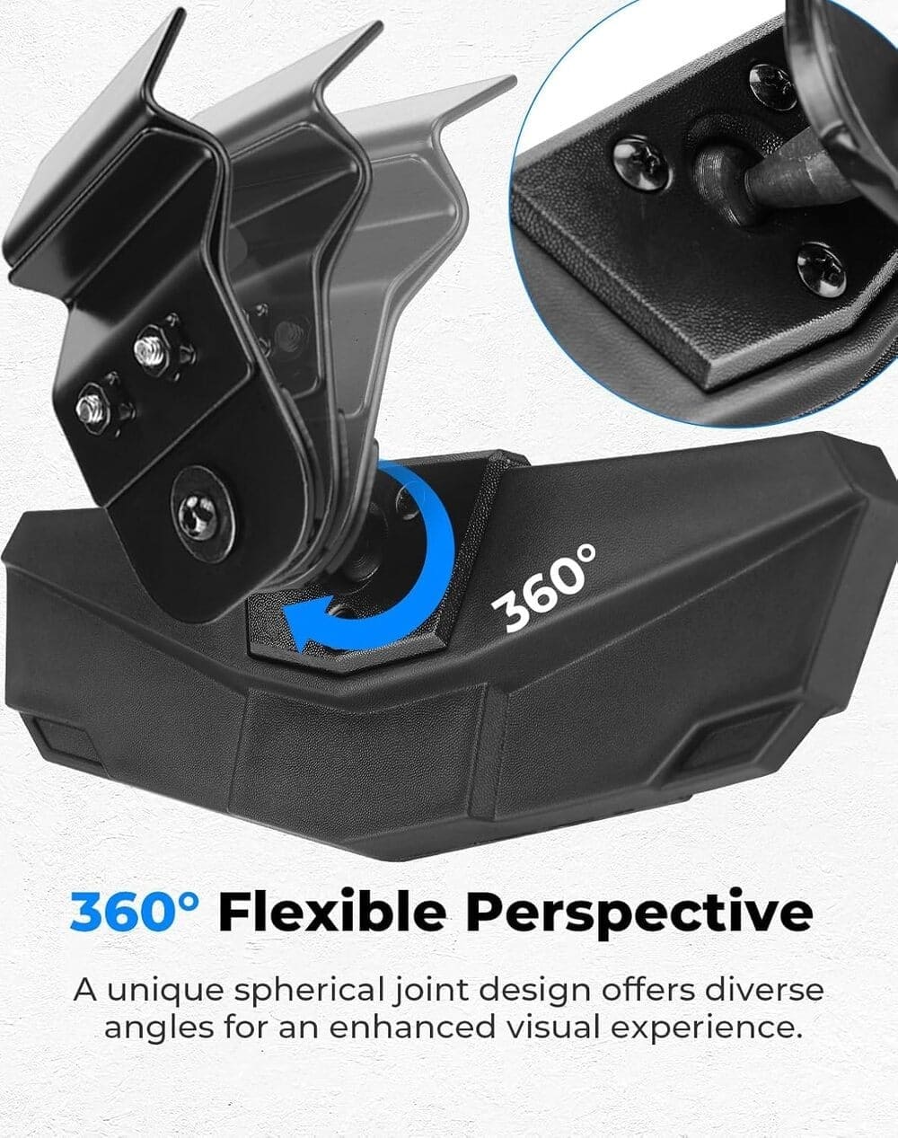 360° Ball Joint Adjustment: Experience unparalleled flexibility with our mirrors' 360° swivel capability, facilitated by a modern ball-head joint. This feature allows drivers to easily fine-tune their viewing angles, ensuring optimal visibility and safety on the go. *Reminder* You can adjust the ball joint by loosening 3 screws on the back