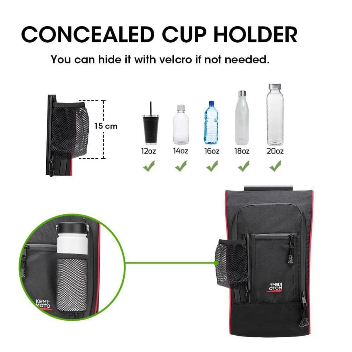 Concealed Cup Holder: X3 storage bags have cup holders to place our drinks or cell phone. With an elastic band to secure the open, your phone or drinks won't pop out on a rough road.