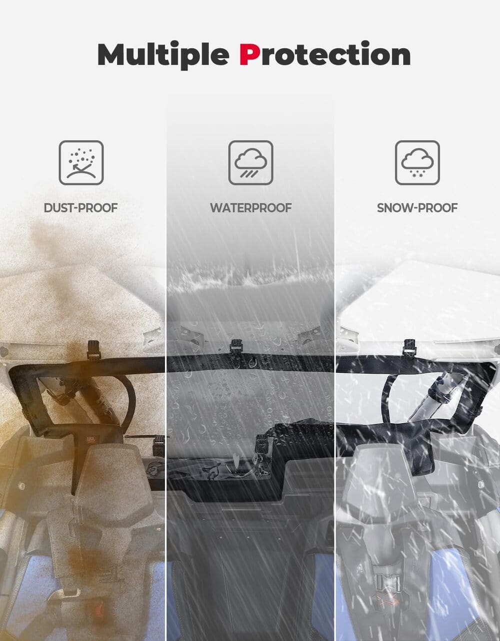 - 100% Waterproof: Kemimoto x3 soft back window is made of 100% waterproof PVC and Oxford cloth, providing excellent sun, rain, snow, and dust protection, while the rear windshield also reducing wind noise, allowing you to enjoy your driving in any weather condition.