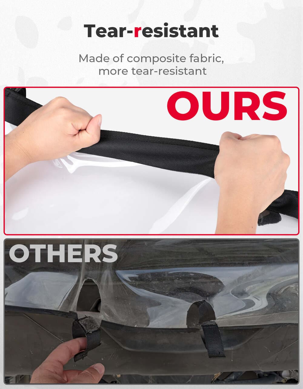 Premium Quality: The x3 rear window is made of custom composite fabric, which has better waterproof performance, abrasion resistance, and UV resistance than ordinary Oxford fabric. The center of x3 rear windshield is made of PVC high-definition transparent film, which provides a clear view and easy to clean.