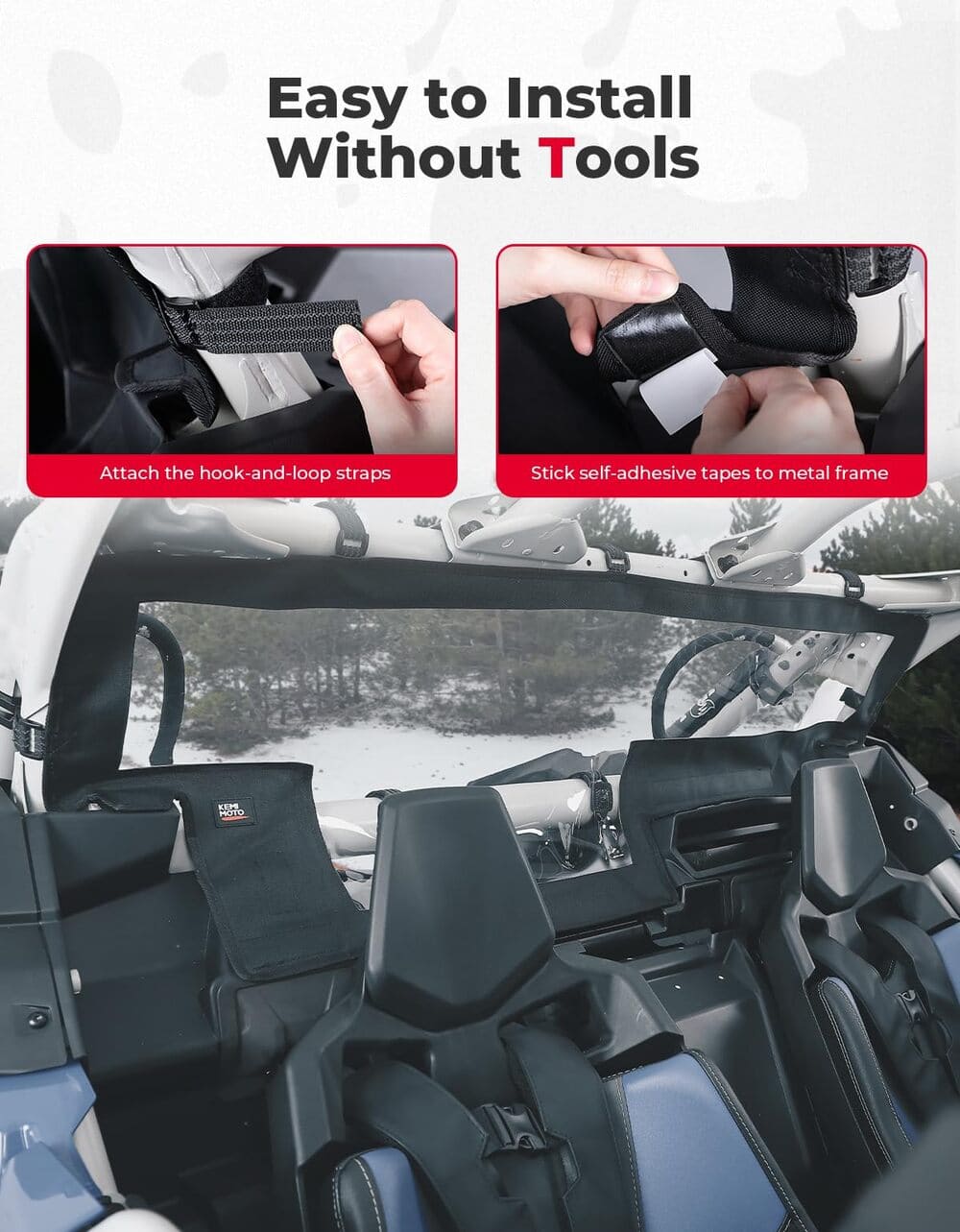 Easy to Install: No need to drill and no tools required to install, which makes the installation piece of cake. You can quickly and easily attach the x3 rear window to your UTV using the non-slip strips, making the windshield a great addition to your UTV accessories.