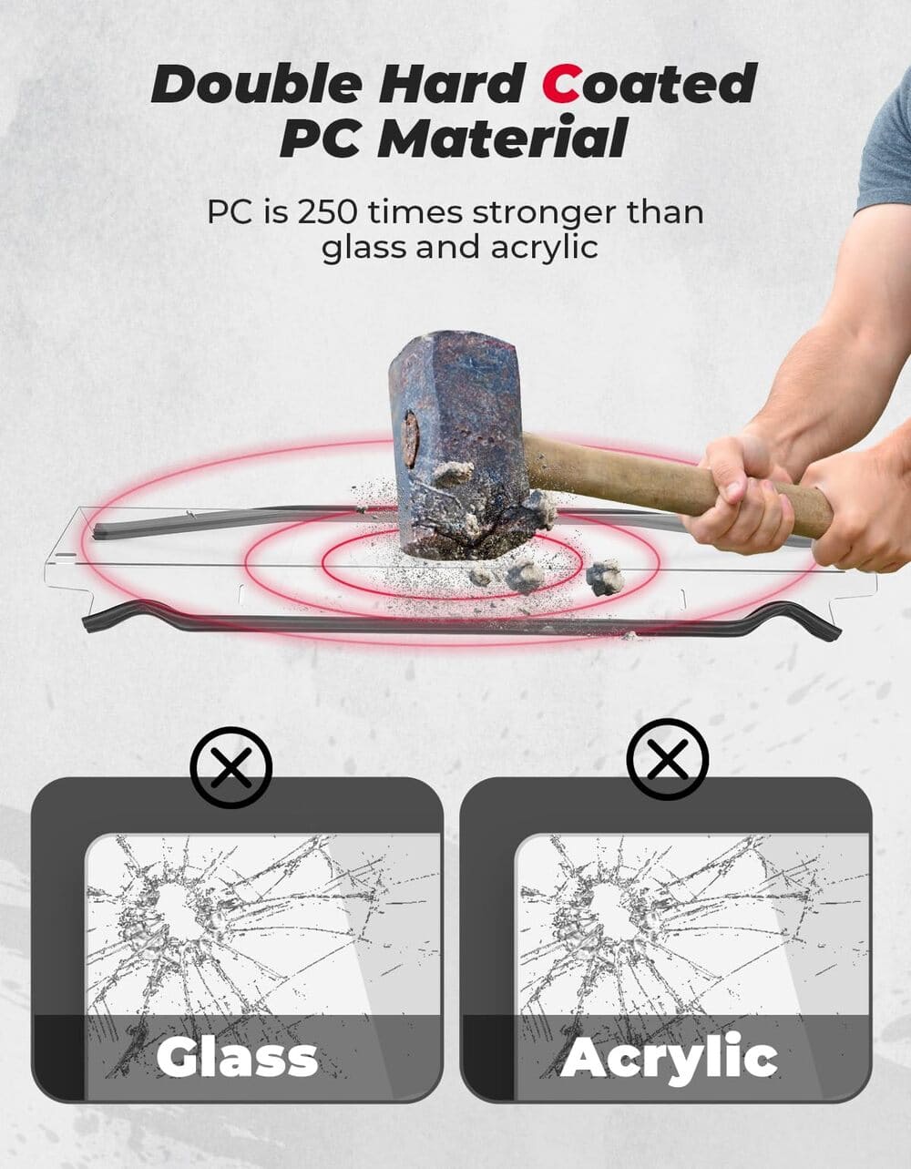 Durable Material: Kemimoto x3 back windshield is made of 1/4 inch thick polycarbonate, which is 250 times stronger than glass, no more worrying about cracking or breaking down during driving. With a UV-resistant layer, x3 back windshield is more antioxidant.