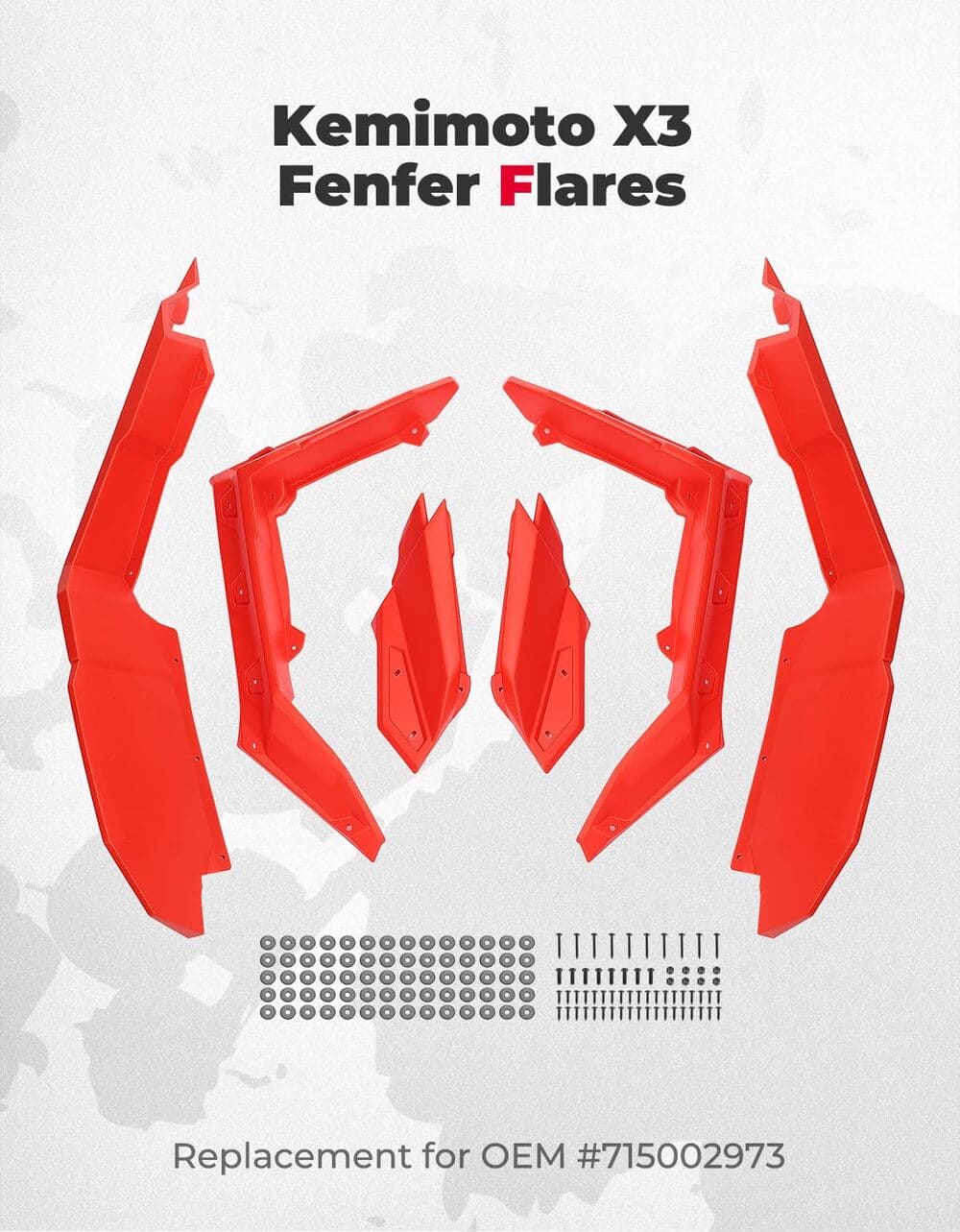 Kemimoto '17-'25 Can-Am Maverick X3 Red Fender Flares