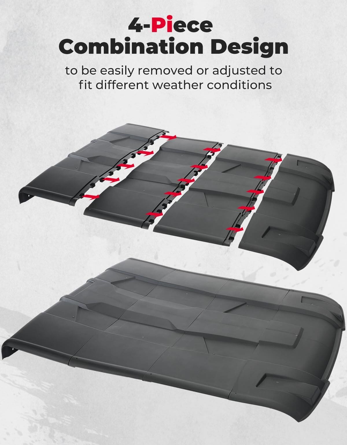 - Simple Installation & Removal: 4-piece design roof top for simple, quick installation, removal, and storage. No drilling is needed, and all hardware will come with the crew top. All necessary hardware is included, saving you time and hassle.