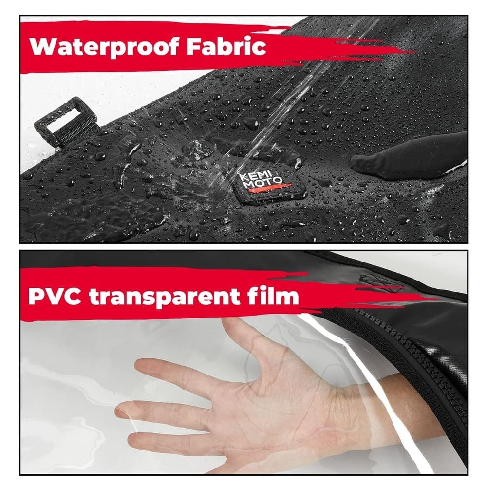 Durable & Clear Vision: Kemimoto soft cab enclosure is made of water-resistant PVC cloth and PVC transparent film, which are strong enough to withstand rough weather. Tips for PVC material: When you receive the UTV soft upper doors, you can blow them with a hairdryer if they are wrinkled because the hot air can straighten the PVC material again.