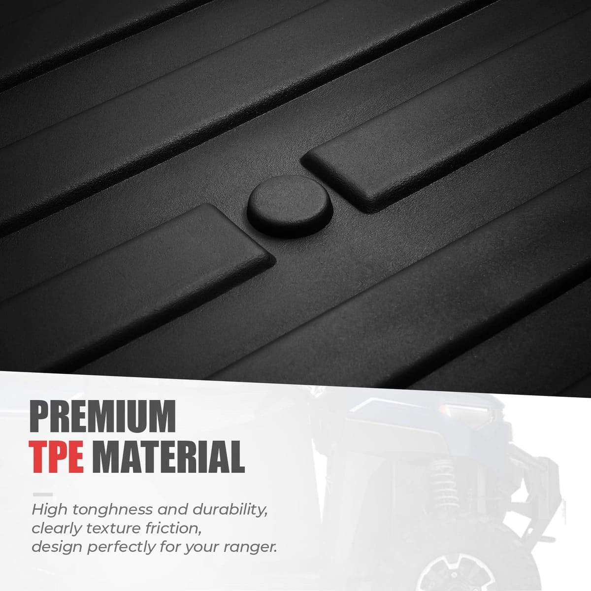 The Kemimoto bed mat for Polaris Ranger is a needed UTV accessory for every driver. The bed is the perfect spot to store your ice box, toolbox, and other belongings. This long-lasting mat can be washed with water, so you can do anything you want with it.