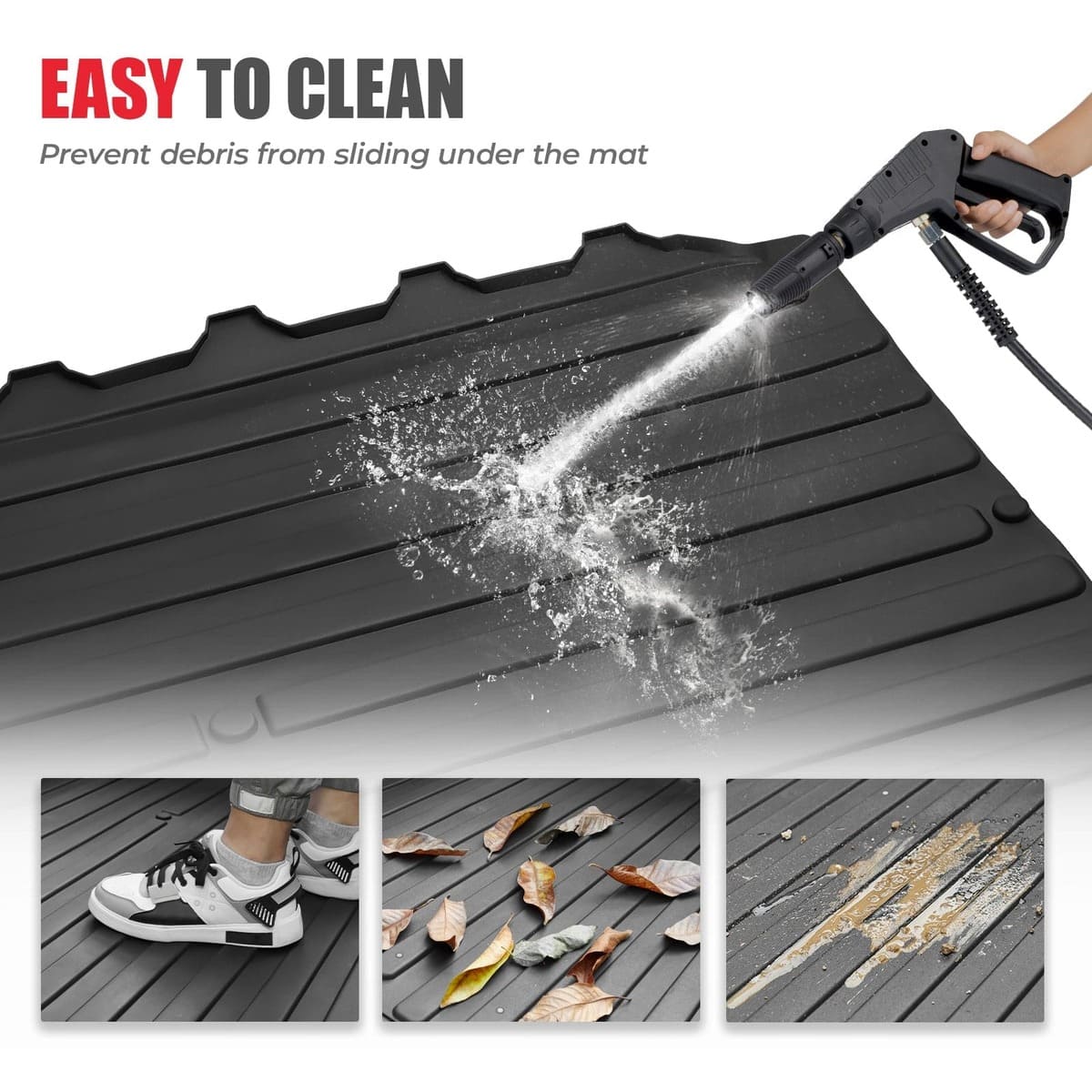 - Super Easy to Install & Clean: Just need seconds to install the cargo mat, no drilling and no tools required. When you clean the bed liner, just simply remove it from your vehicle, shake the dirt off and hose or mop the surface.