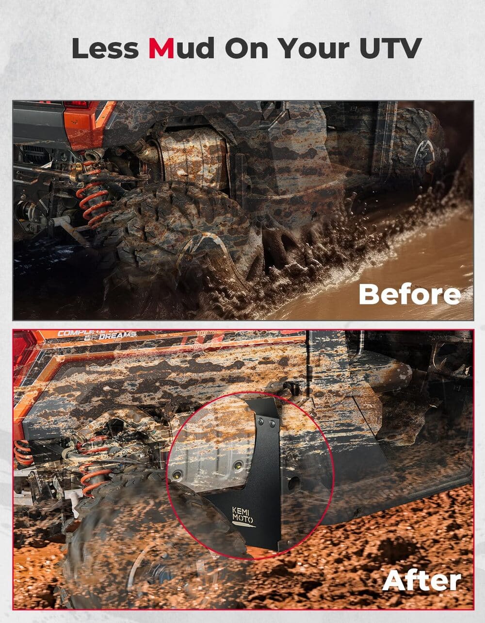 - Protection: This fender flares is installed at the rear wheel well to prevent rain, snow, mud, dust, debris, and water from entering the battery compartment under the seat, keeping it clean and reducing cleaning work. Your UTV will get rid of dirt and moisture.