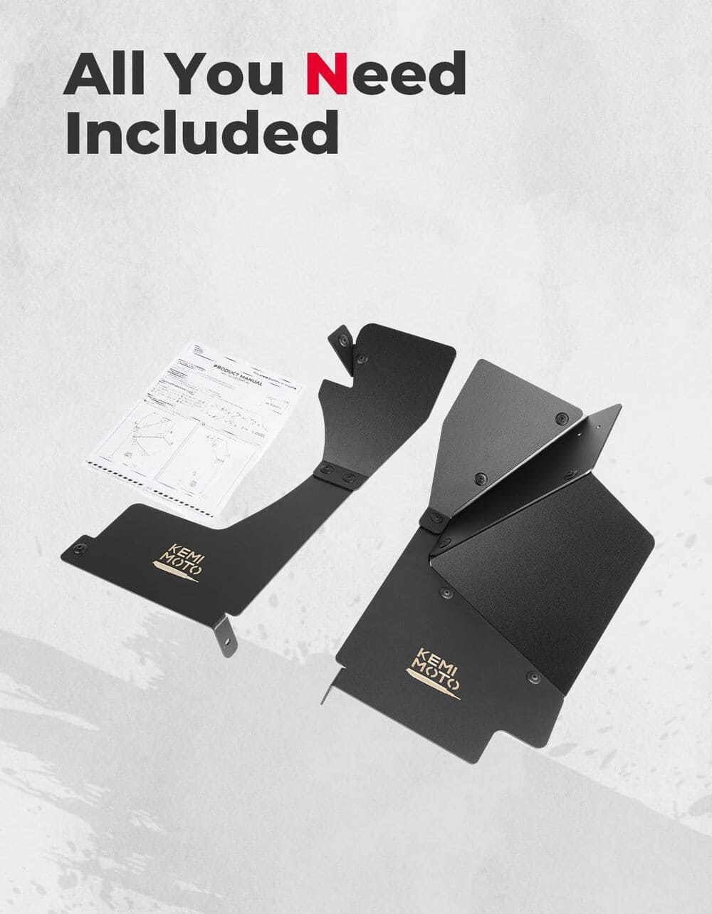 - Included Parts: A set of Kemimoto mud fenders includes a pair of rear fenders (left and right); a set of mounting hardware; and a manual. If you have any questions about packaging or fender flares, please feel free to contact us.