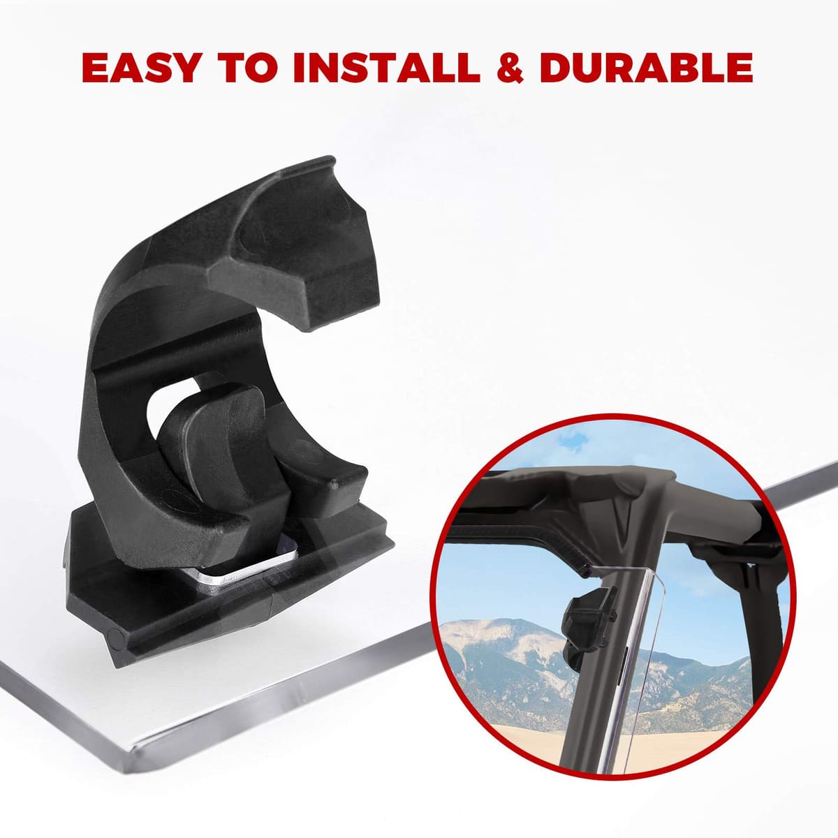 • New clamp design & easy to instal: Different from the clamps on the market, our windshield buckle adopts a new design that fully fits the RZR XP 1000 roll bar, and there will be no noise during driving. Installing RZR windshield is more convenient and quick to you.