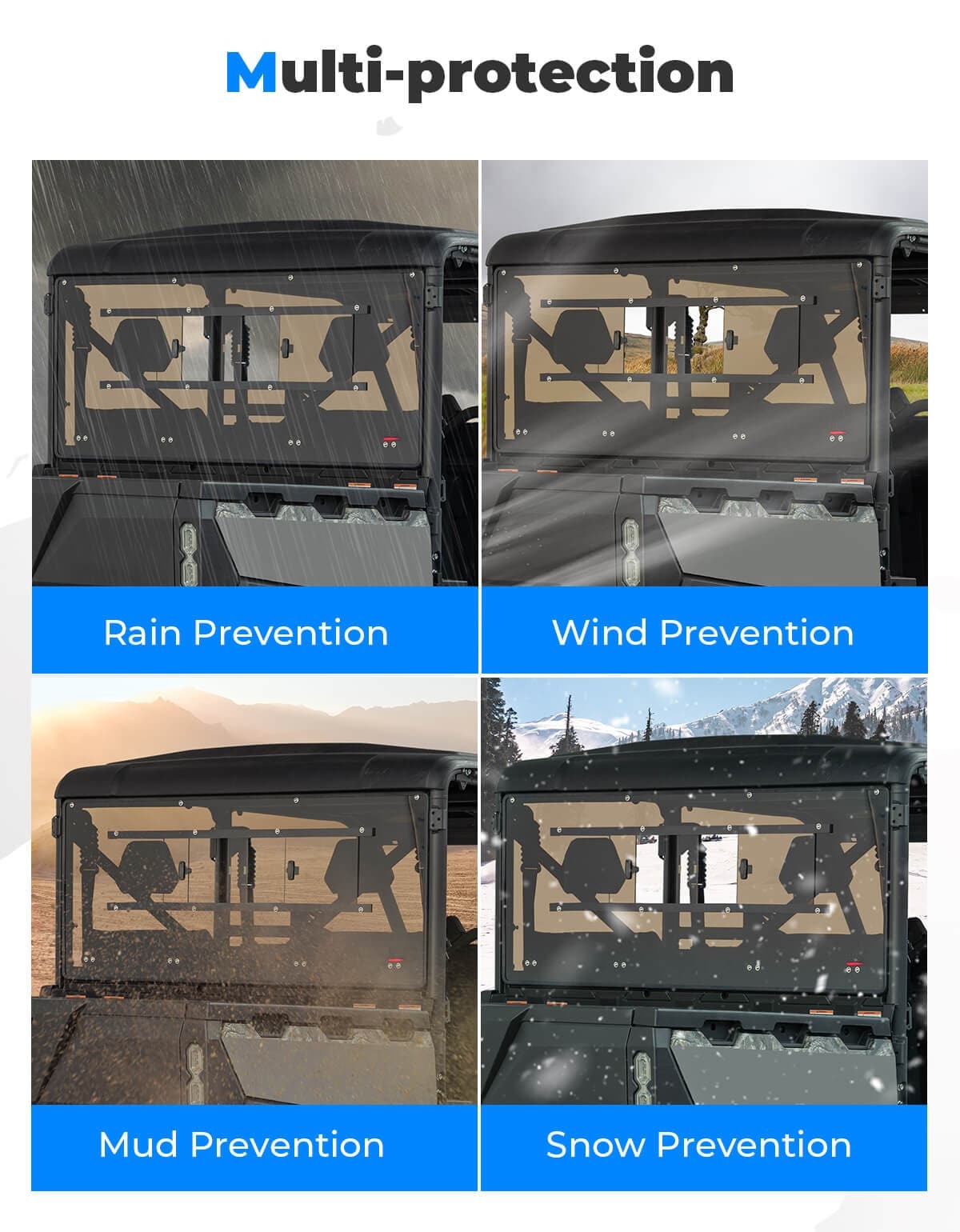 - 3-in-1 Ventilation Window Design: The ventilation windows on the rear windshield allow you to control airflow. They can be set to fully closed, half-open, and fully open states, providing wind protection, natural breeze, or ventilation effects.