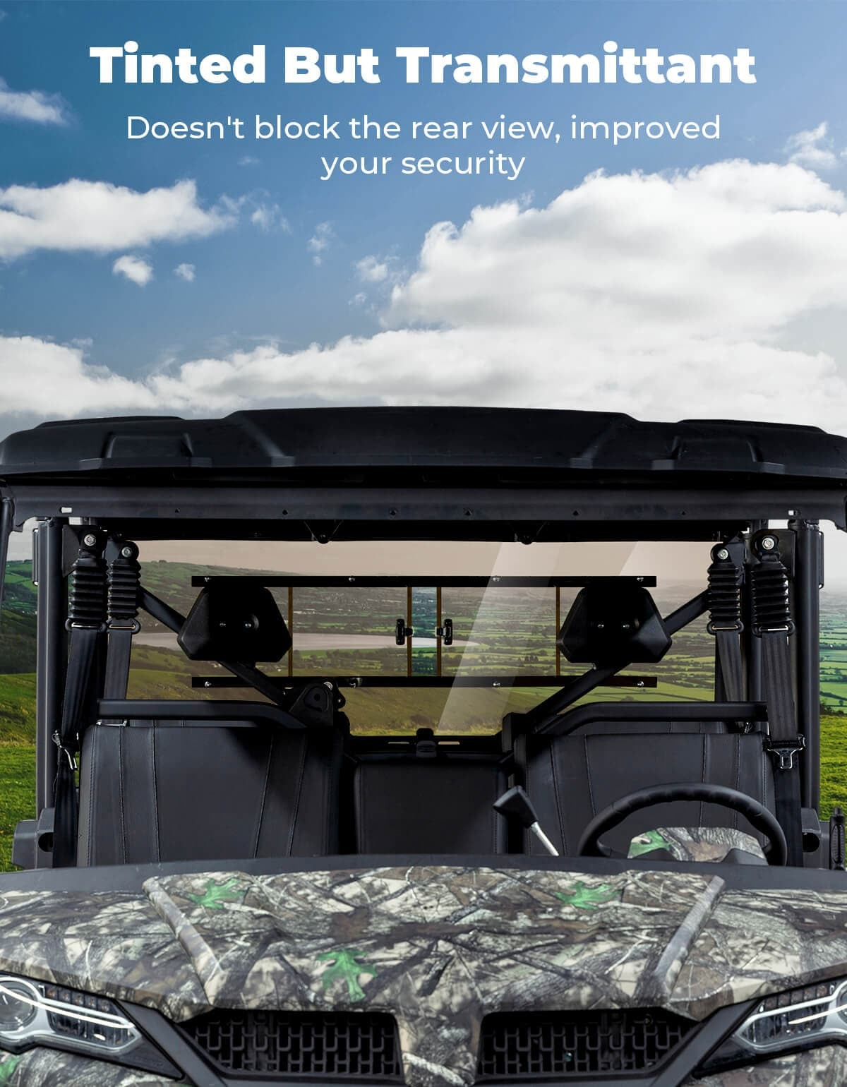 - Tinted Rear Window: The tinted rear window offers better shading and sun protection compared to clear windows, blocking up to 95% of UV. Simultaneously, our rear window is made of high light-transmission material, ensuring a safe and clear view.