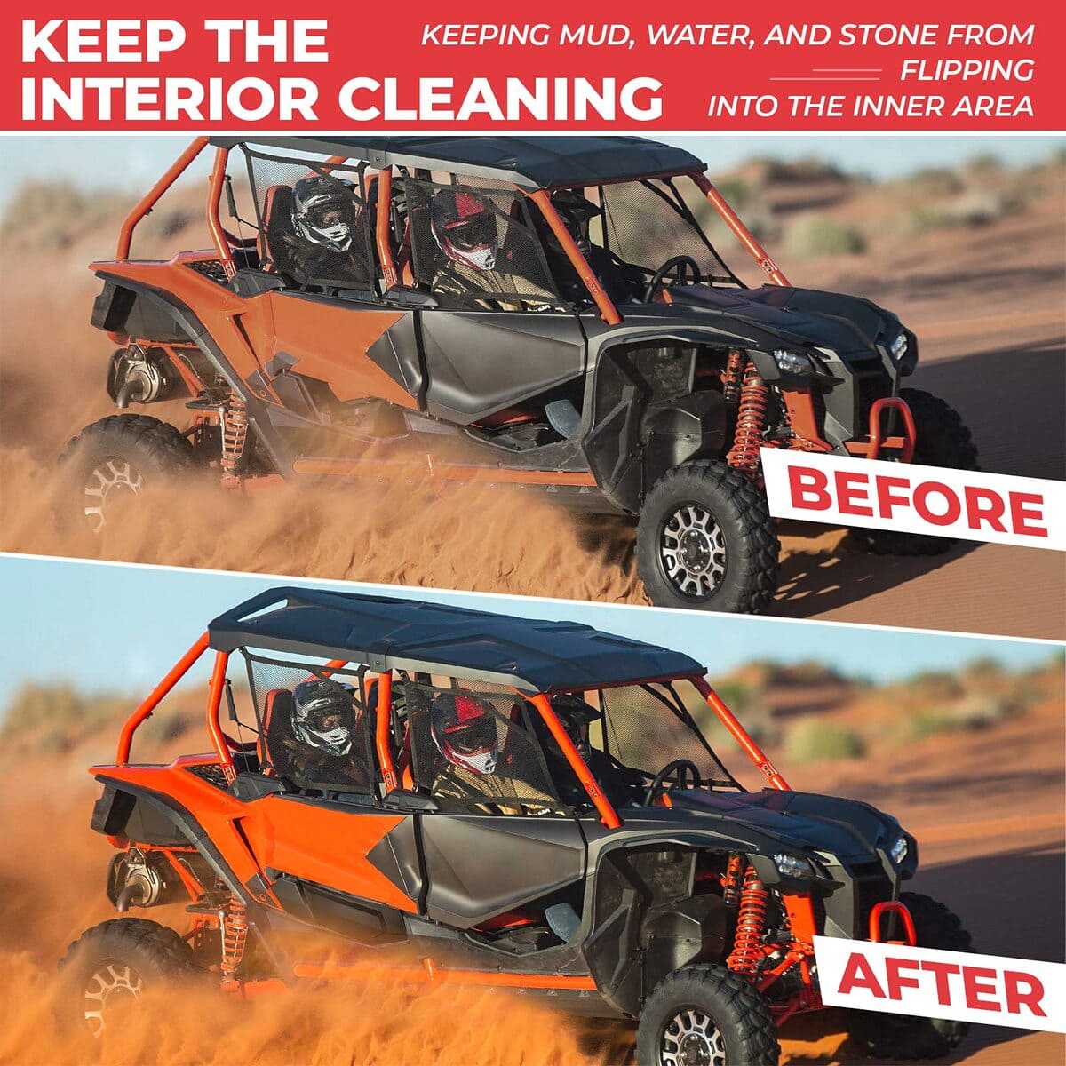 Well Protection: Kemimoto door panels keep stones from flipping into the rider area, no distraction while driving, and protecting your leg from hurting. Moreover, it can keep your cab area clean with the mud and water out.